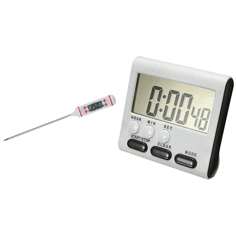 Набор 2: 1 термометр + 1 кухонный ЖК-таймерПодсчитывайте функцию вверх и вниз, функцию памяти и функцию обратного отсчета. Цифровой таймер для кухни, электронные часы. Большой цифровой кухонный таймер с ЖК-дисплеем с сигнализациейС громким сигналом, вы можете услышать его, даже вы находитесь в другой комнатеЖК-дисплей показывает точные результаты температуры за несколько секунд, сцепка делает идеальный термометр для приготовления мяса, птицы, жидкостей, барбекю, гриль, выпечки и изготовления конфет. Гуманный дизайн. Тонкий наконечник зонда позволяет избежать попадания больших проколов в ваши продукты, что означает, что мясные соки остаются в мясе, где они находятся.Легко использовать, просто вставьте длинный температурный зонд в вашу еду/жидкость и получайте идеально приготовленную еду каждый раз. Достаточно долго, чтобы не сжигать руки во время измерений. Легко вколоть в еду тонким наконечником зонда, он может получить температуру более точно и быстро.Работа, связанная с приготовлением пищи, приуроченными играми, планированием мероприятий, воспоминаниями журналиста и многого другого.Питание от аккумулятора AAA (не входит в комплект)Тип: бытовые термометрыИспользование термометра: кухонные термометрыОбновленная версияВодостойкий дизайн для жизни воды.Улучшенный ЖК-дисплей более стабильный.Новая посылка с ручным дизайном.Мгновенное чтениеШироко используетсяРабота над всеми типами продуктов, облегчает приготовление пищи и приготовление на гриле. Идеально подходит для использования в помещении или на открытом воздухе. Вы мгновенно станете вашим собственным неостановимым шеф-поваром кухни!Широкий диапазон температурОтличительный скорость передачи данных: 0,1 по Цельсию, идеально подходит для мяса, птицы, барбекю, коптильни, гриль, пива, молока, супа, конфеты и многое другое.Удобный чехол для храненияПоместите термометр в этот уникальный облегающий чехол, который поставляется с забавной ручкой с легким захватом.Название: термометр для приготовления пищиДиапазон измерений: от-50 до + 300 градусов по Цельсию (от-58 до + 572 по Фаренгейту)Рабочая Напряжение: 1,5 V (включая батарею)Разрешение температуры: 0,10/по ФаренгейтуРежим энергосбережения: 10 минут функция автоматического отключенияЦвет: белый/черныйМатериал: пластикРазмер: Длина: 22,5 смПосылка:1 x термометрРуководство по эксплуатации-1 шт.1 х пластиковая коробка1 х LR44 (AG13) батарея1 х кухонный ЖК-таймерТолько вышеуказанная посылка, другие товары не включены.Примечание: светильник и различные дисплеи могут привести к тому, что цвет товара на картинке немного отличается от реального. Допускается погрешность в измерениях +/- 1-3 см.