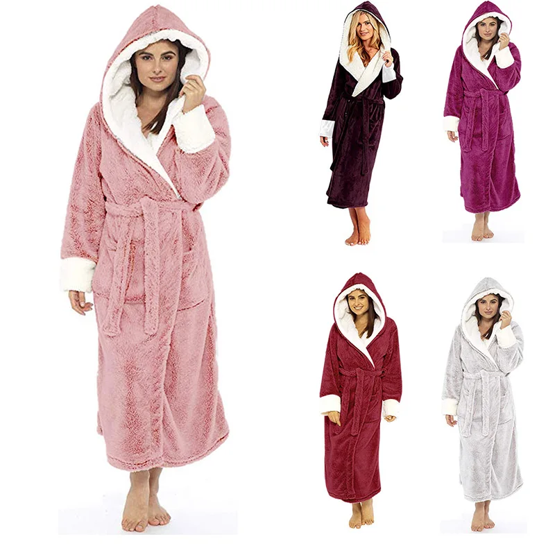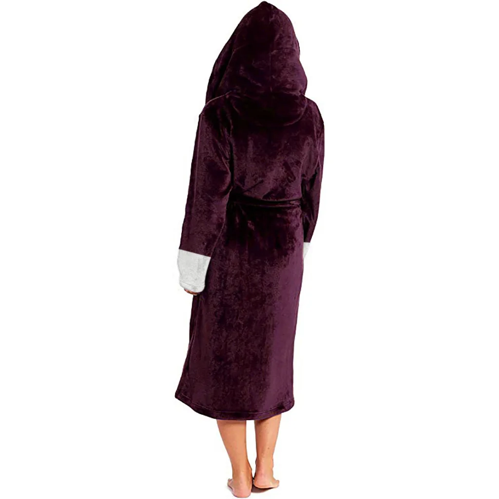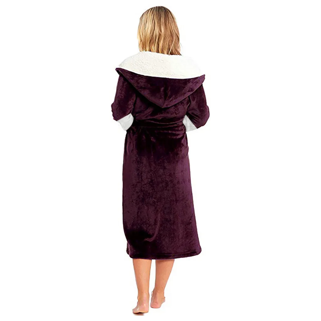 Халат женский однотонный бандажный с длинным рукавом и капюшоном, 5XL