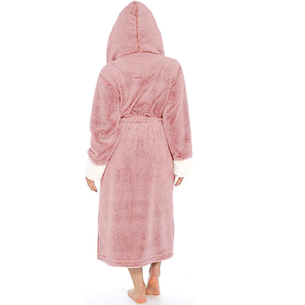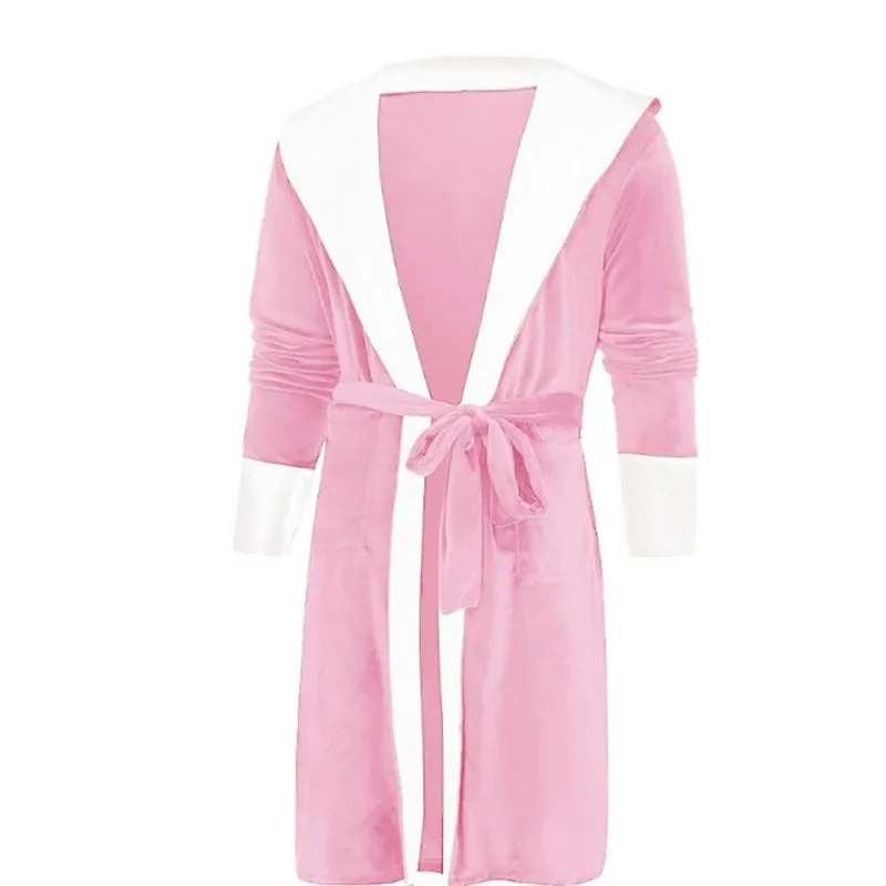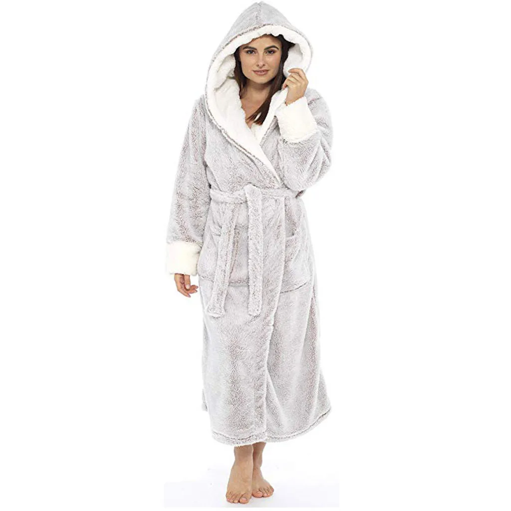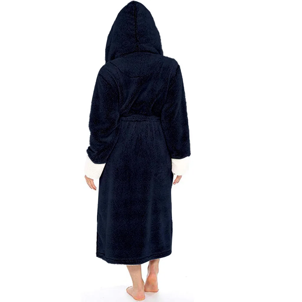 Халат женский однотонный бандажный с длинным рукавом и капюшоном, 5XL