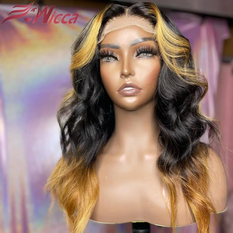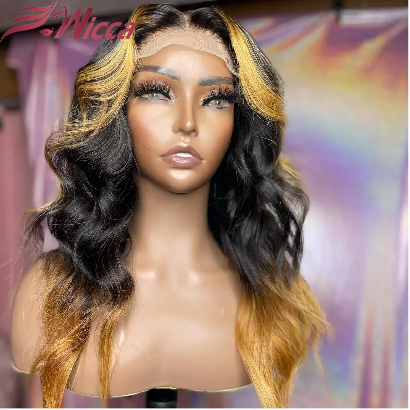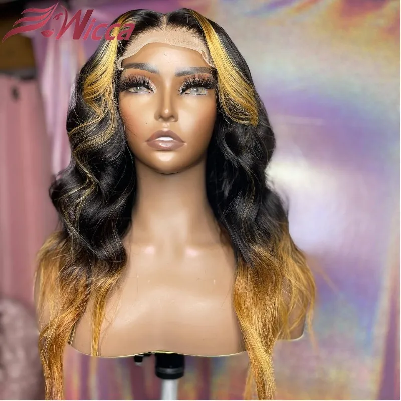 Omber медовый светлый цвет 13x 4 кружевные передние человеческие волосы парики для женщин 180% предварительно выщипанные бразильские Remy Волнистые кружевные передние al парики