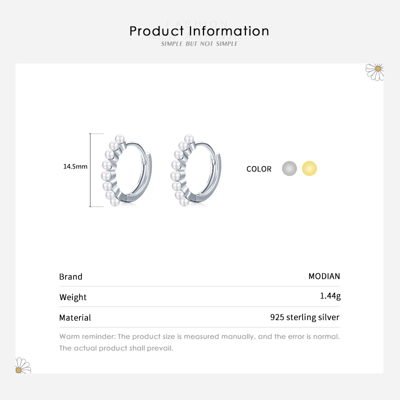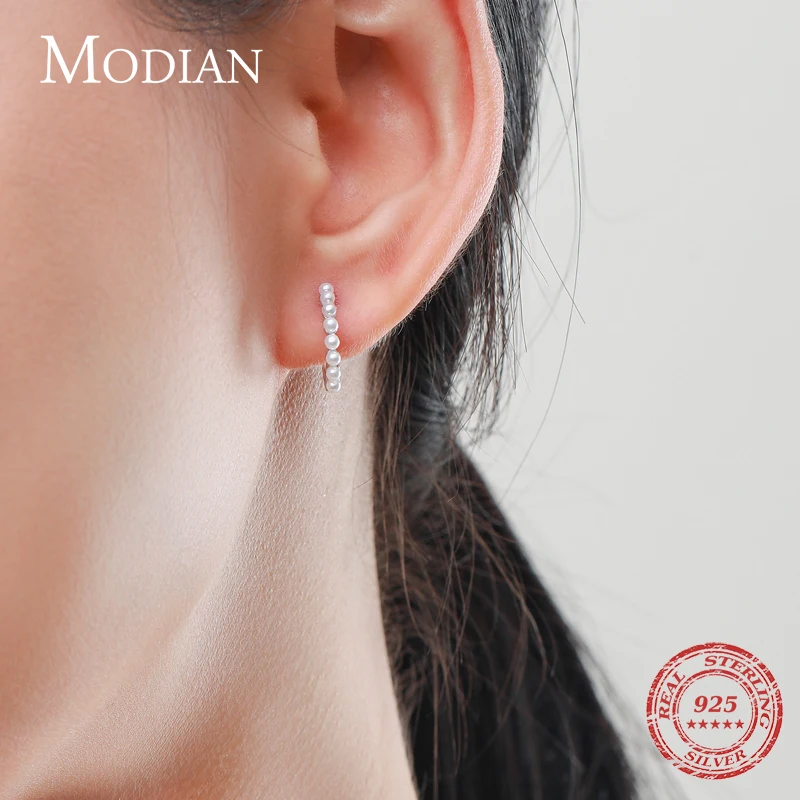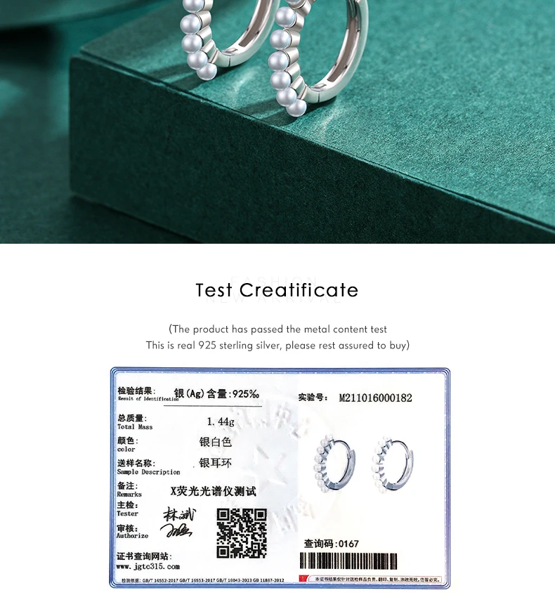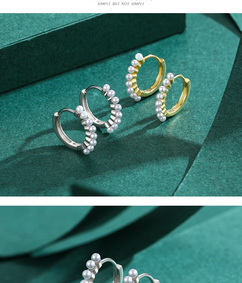 Серьги-кольца женские из серебра 100% пробы с жемчугом