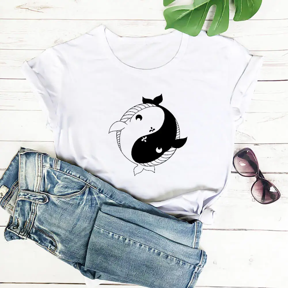 Футболка женская хлопковая с коротким рукавом и принтом киты