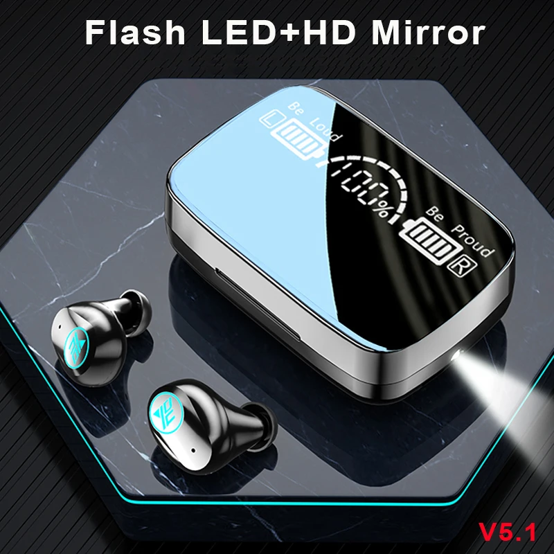 V5.1Tws Bluetooth-наушники; Беспроводные наушники; HD-наушники с зеркальным фонариком; 3500 мАч; Зарядный бокс; 9D бас; Стереонаушники с шумоподавлением