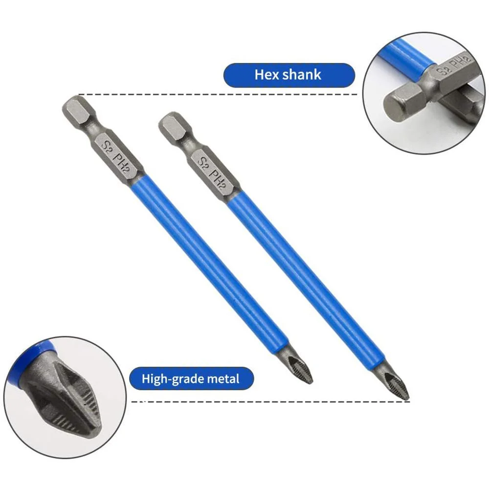 Hex Shank FitsScrewdriver Bits Set 50mm PH2 Anti slip with Magnetic