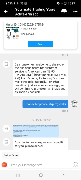 I do not recommend buying from this seller is a cheater, after I ordered the product from him at a really good price, 46$ after coupons he refused to send the product and at the end a he ship it with a fake tracking number