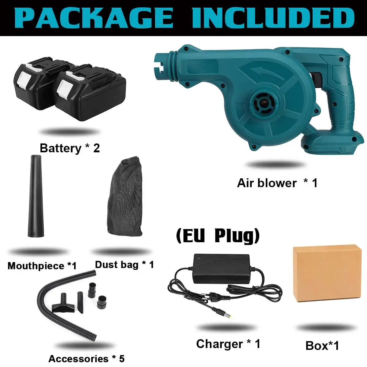 Тип 31 воздуходувка1 х мешок для пыли4 х трубкиАксессуары-2 шт.2 аккумулятора (388VF 15000 мАч)Зарядное устройство-1 шт.1 х упаковочная коробка