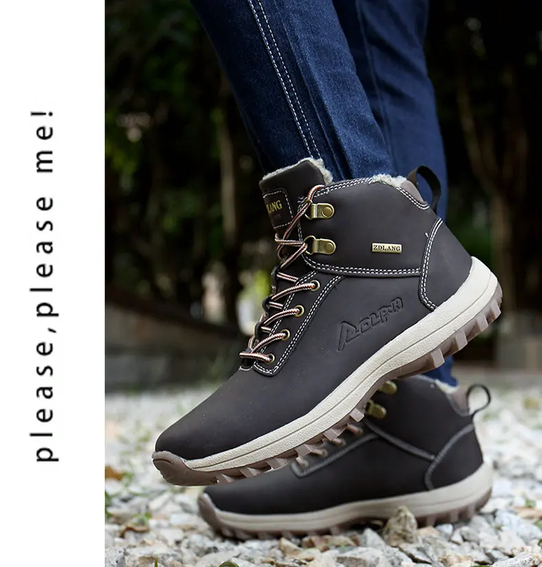 Мужские брендовые зимние ботинки, водонепроницаемые кожаные кроссовки, сохраняющие тепло мужские ботинки, уличные мужские походные ботинки, Рабочая обувь, размеры 39-47
