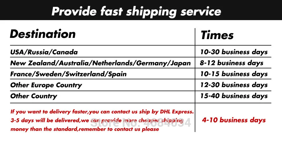 1. Мы отправим товар в течение 2-5 дней (рабочих дней, а не праздничных сезонов) после подтверждения оплаты.