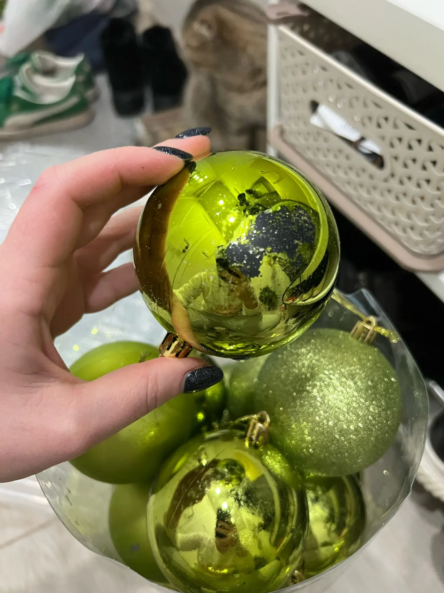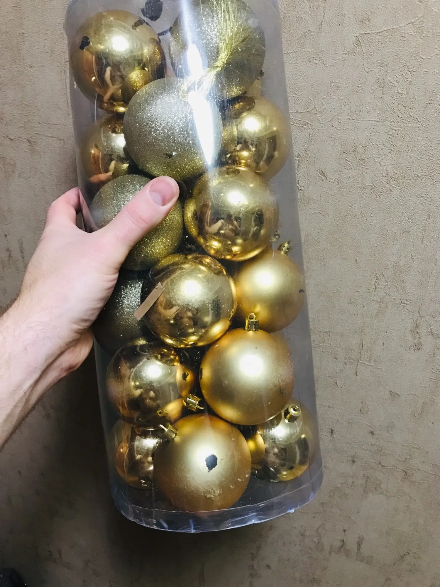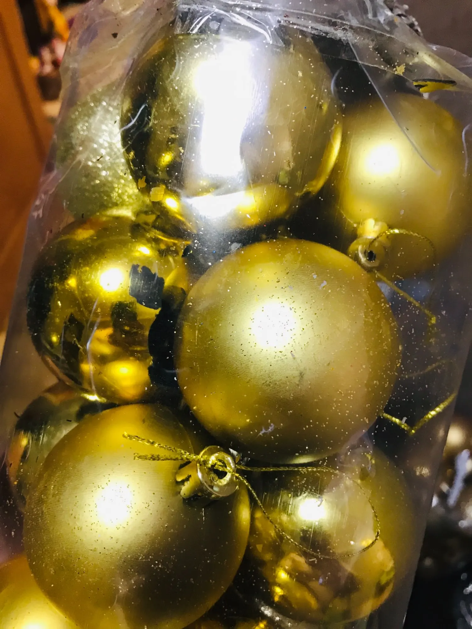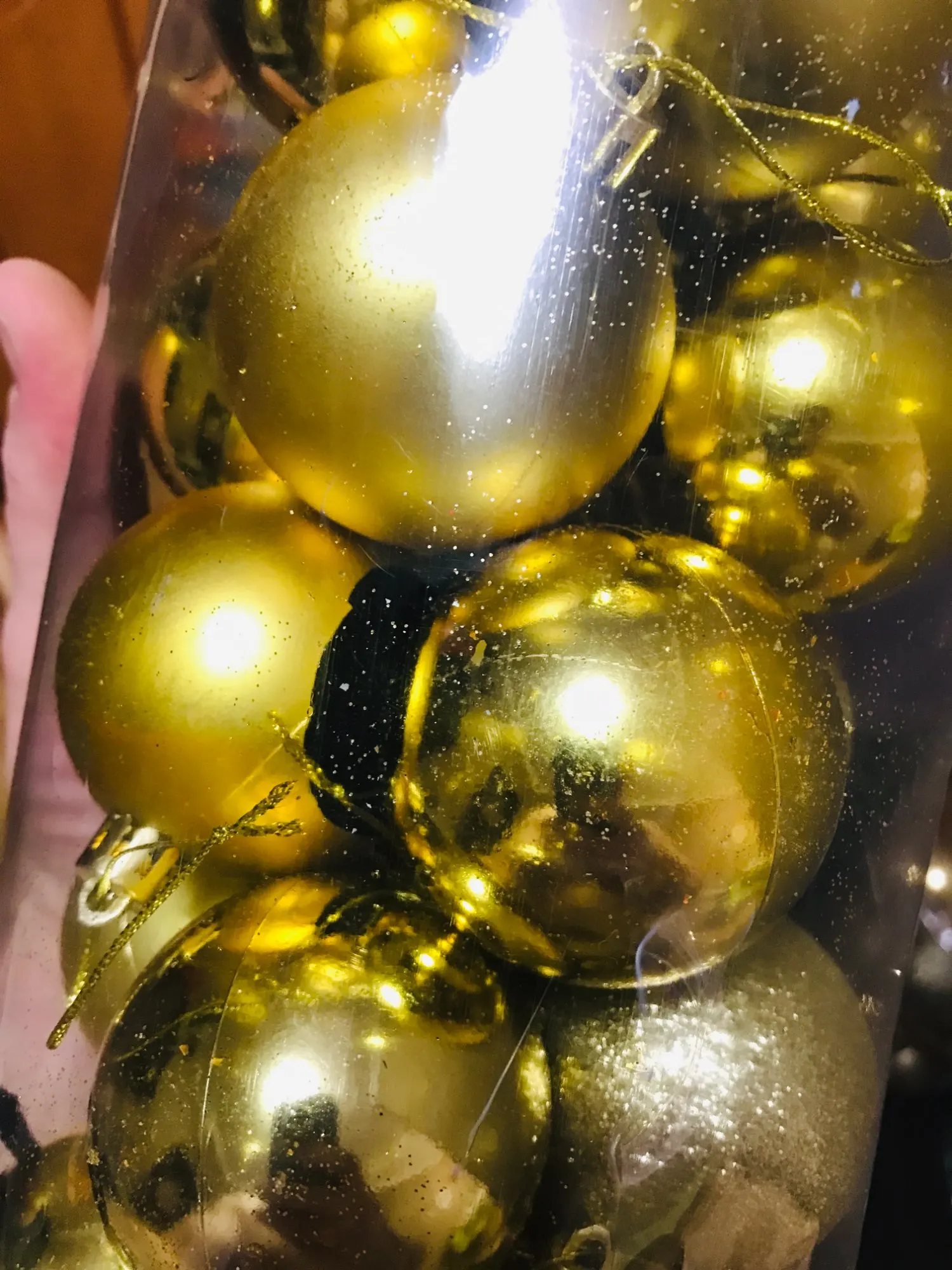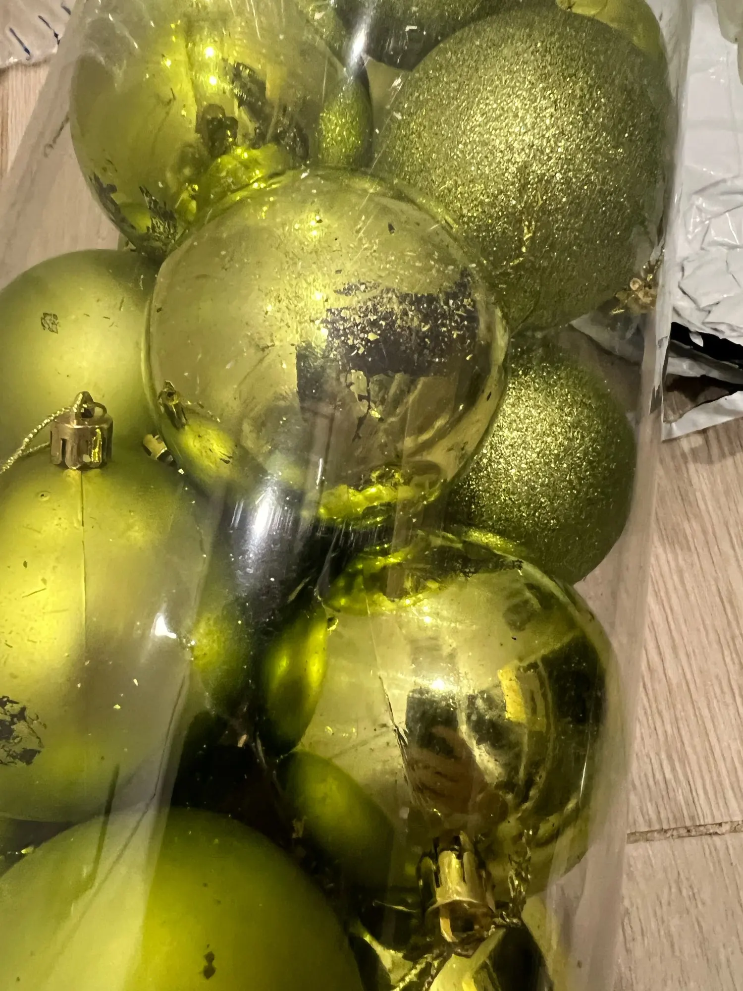 Некоторые шарики (30%) были поломаны, потресканы, разбиты, вмяты. Написала продавцу (приложив фото) и он вернул 90% от стоимости товара. Думаю, что проблема была не в продавце, а в доставке. Заказывала в октябре на ёлку к Новому Году, а в итоге они пришли только 3 января. То есть доставка была 3 месяца.