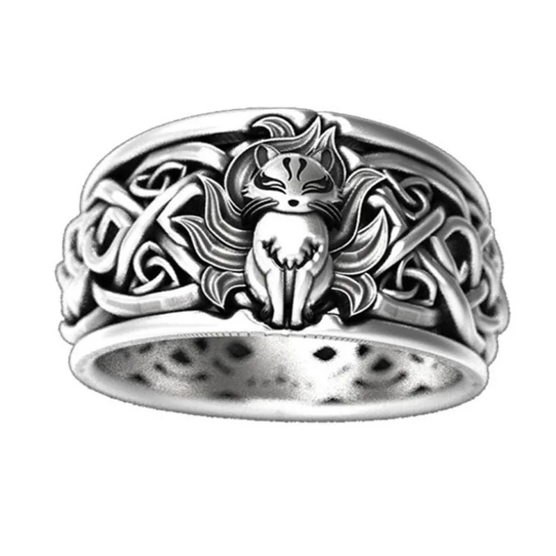 Кольцо с изображением лисы с девятью хвостами в старинном мифологич...
