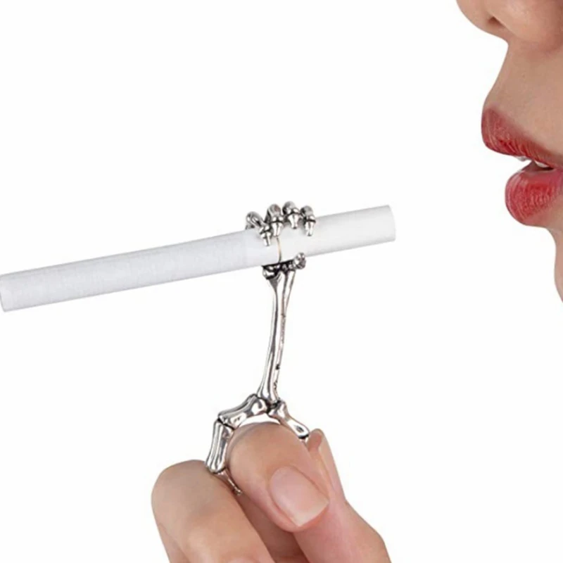 Ручное кольцо для курения, держатель для сигарет, держатель для сигарет с толстым дымом, регулируемое кольцо с рисунком черепа для сигарет