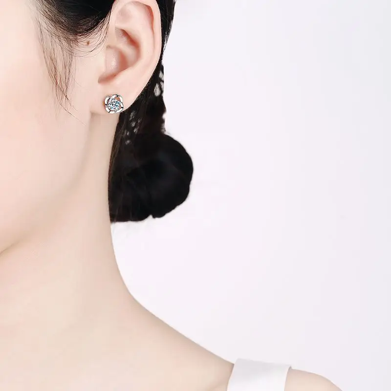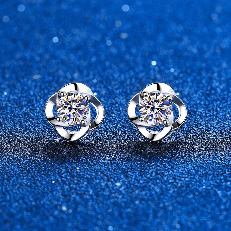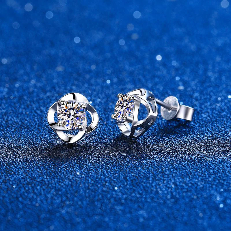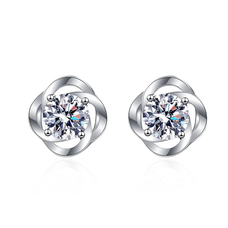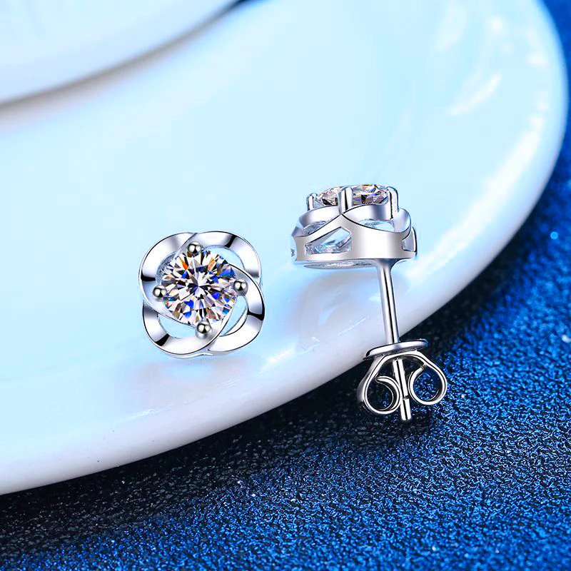 Серьги-гвоздики с 4 зубцами в виде цветка клевера, 100% стерлингового серебра 0,6-1ct VVS1