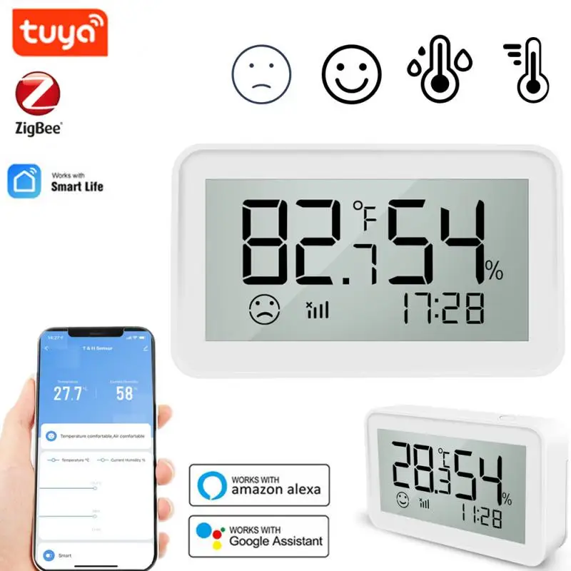 Беспроводной Wi-Fi датчик температуры и влажности Tuya Smart Home со светодиодным экраном, работает с Google Assistant Alexa Smarthome