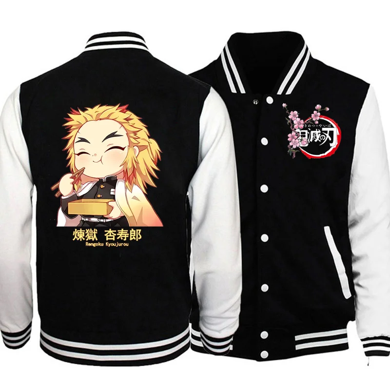 Мужская бейсбольная куртка в стиле хип-хоп Harajuku Demon Slayer Chibi Rengoku, куртка-бомбер в стиле пэчворк, модная Уличная Повседневная куртка унисекс