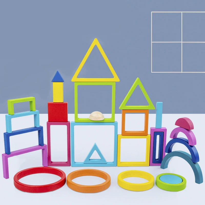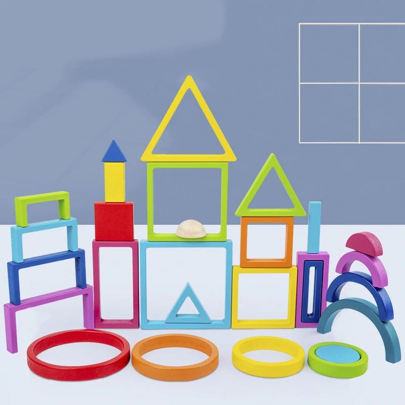 Montessori color shape recognitionWooden rainbow stacked blocks