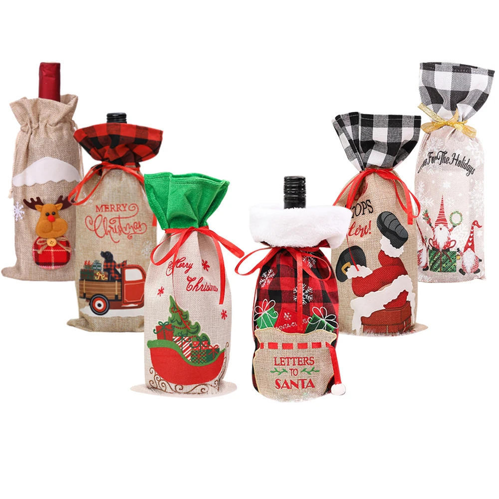 Рождественские Чехлы для винных бутылок, праздничные Чехлы для буты...