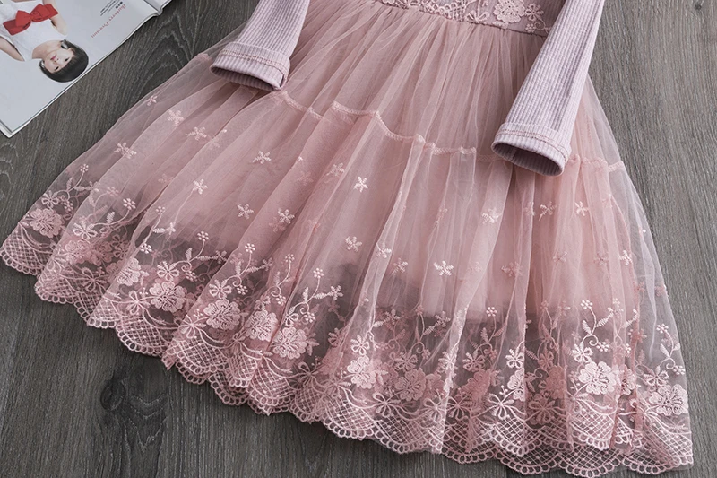 Зимнееосеннее теплое платье с длинным рукавом для девочек, детские платья принцессы с цветами для свадевечерние Ринок, детские кружевные платья для девочек