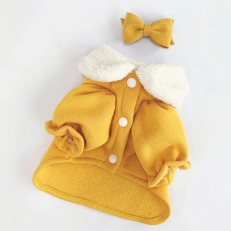 Милая желтая Розовая Одежда для собак, Вельветовая теплая одежда дл...