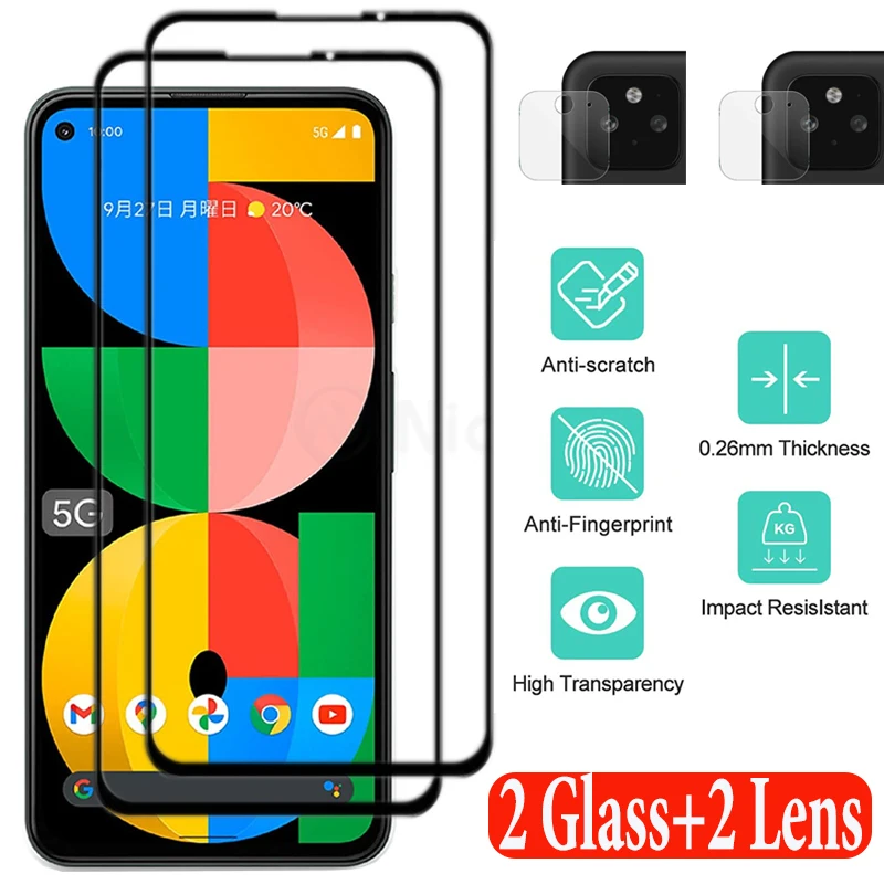 4 в 1, защитная пленка для экрана с полным покрытием для Google Pixel 5A 5G 6,34 "2.5D, закаленное стекло премиум-класса для Google Pixel 5A 5G