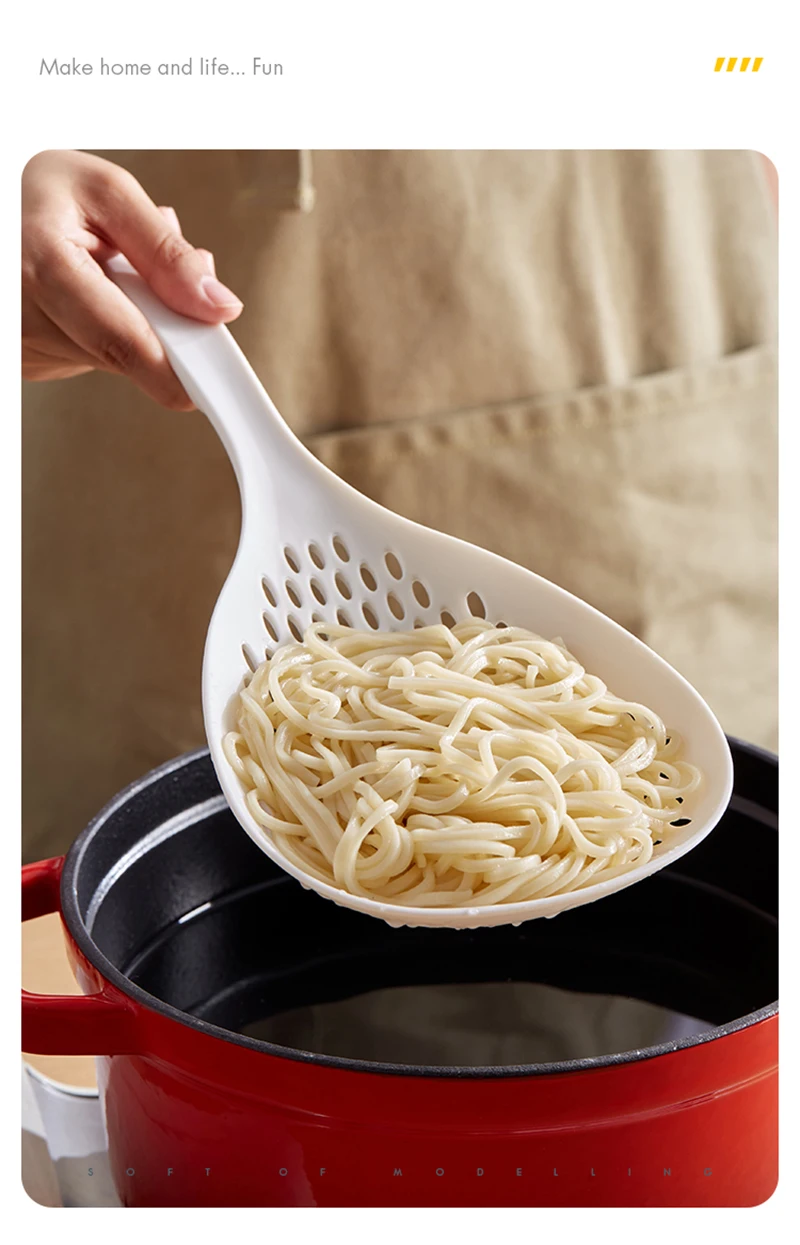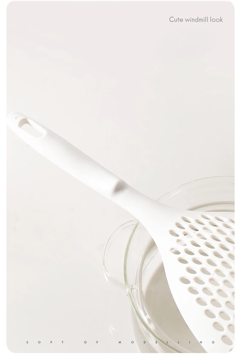 Белые лопаты для приготовления пищи, Кухонное ситечко, совок, высокотемпературная нейлоновая ложка, дренажные приспособления, большой дуршлаг