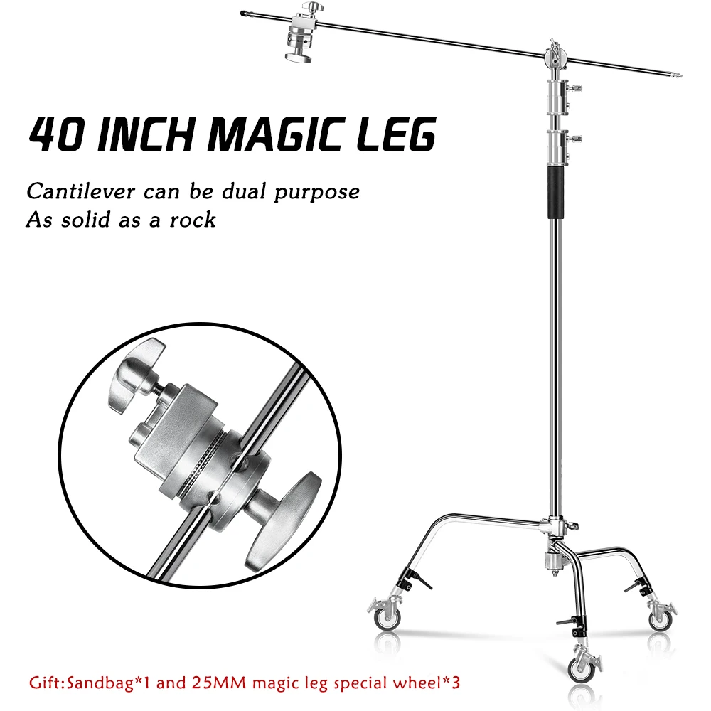 Подставка для фотографии C-Stand из нержавеющей стали с стрелой и рукояткой Улучшенная максимальная высота 260 см с одной регулируемой волшебной ножкой