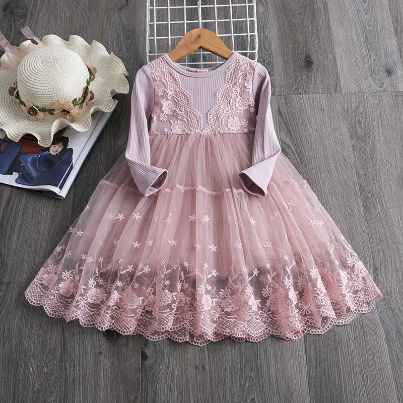Зимние платья для девочек, Новое Кружевное платье принцессы с цвета...