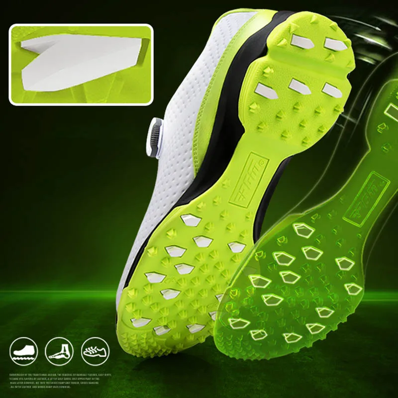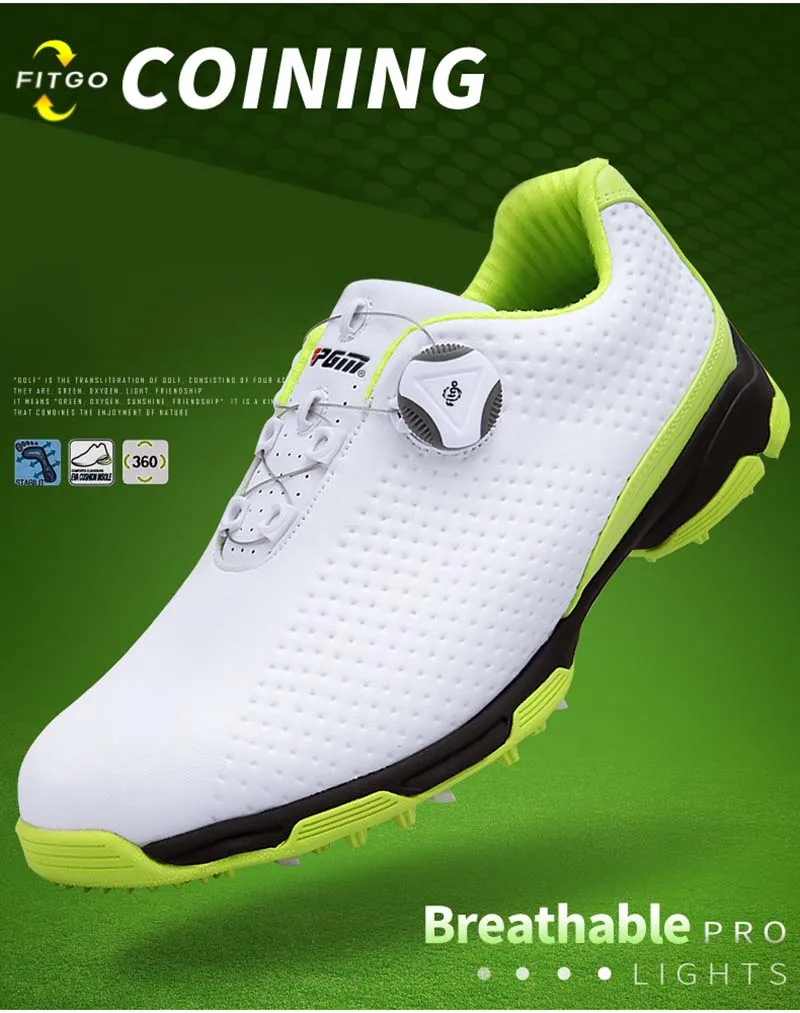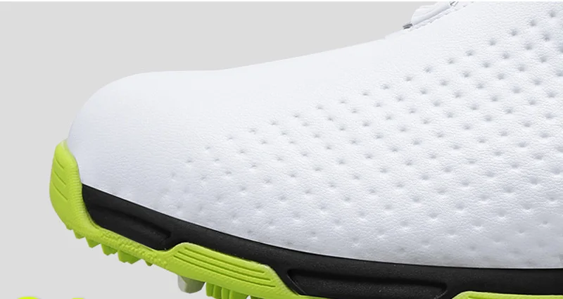 1. Носок усилен и переупакован из очень мягкой кожи.2. Внутри обуви классический кожаный дизайн с отверстиями, который подчеркивает дыхание гольфа.3. Больше контакта с поверхностью земли, Лучше сцепление, противоскользящие и износостойкие.