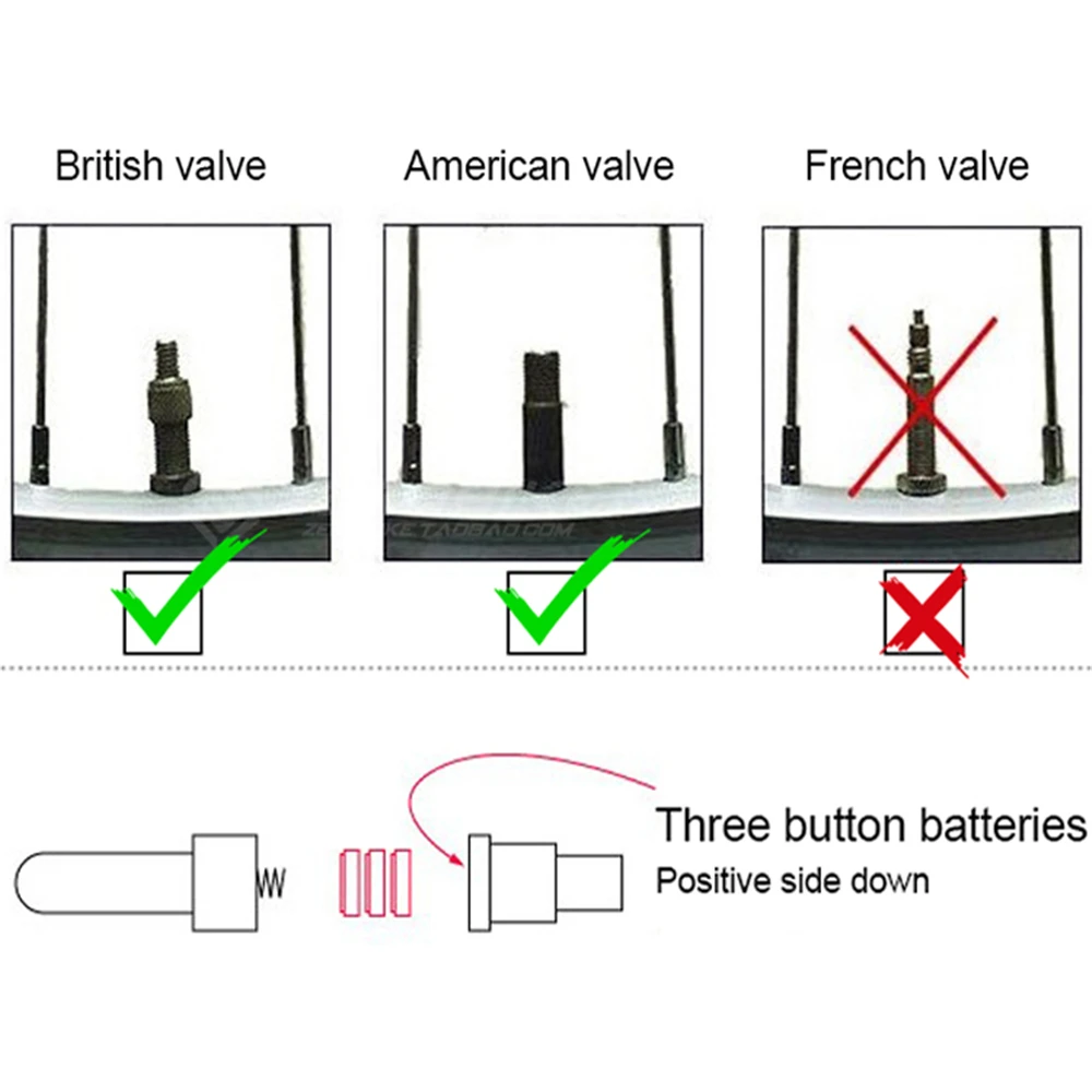 Источник питания: Этот продукт поставляется с 3 кнопками AG10Режим: Вибрационный светильник клапана, экономия батареи при недвиженииУстановка: устанавливается на клапан (используется для американских и французских клапанов. Примечание: При установке французского клапана требуется головка для преобразования, и изделие оснащено пластиковой головкой для преобразования)