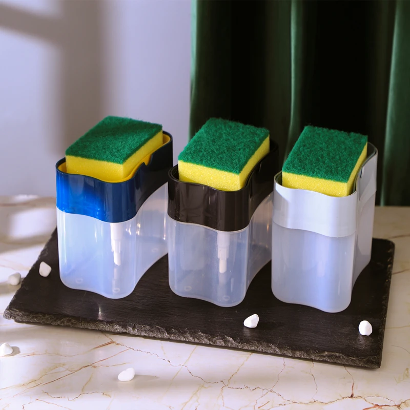 1,2 в 1 дизайн: диспенсер для мыла и caddy, управление одной рукой. Диспенсер для раковины с прикрепленным caddy, вы можете использовать его для хранения губки, скрубберов, тряпок, чистящих подушечек в одном удобном месте, сохраняя воду от кухонных прилавков.