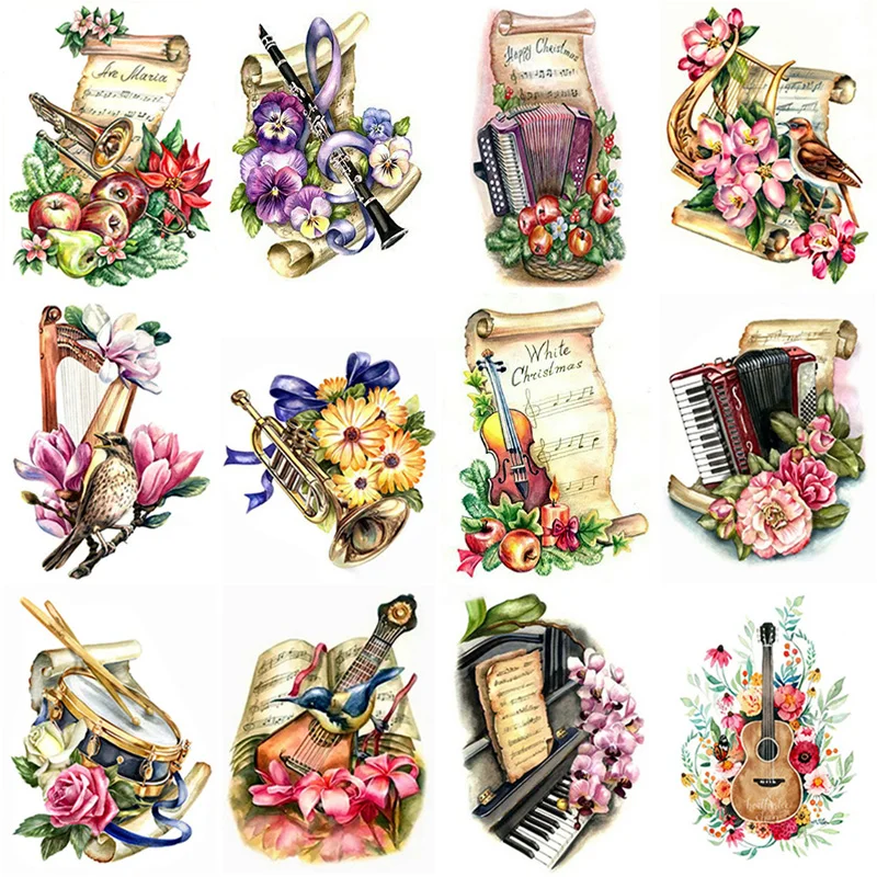 Новый 5D DIY алмазная живопись музыкальный инструмент Алмазная Вышивка Цветы Вышивка крестом полностью квадратная круглая дрель ручной домашний декор