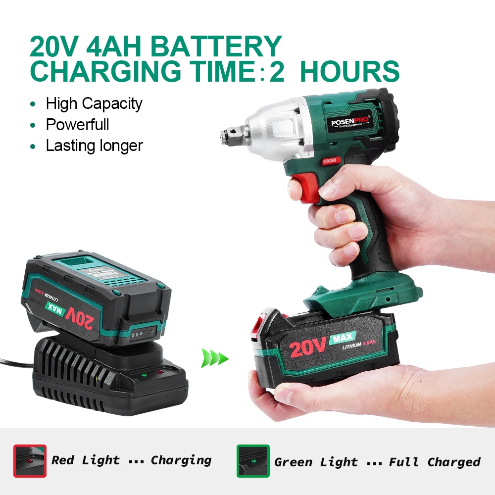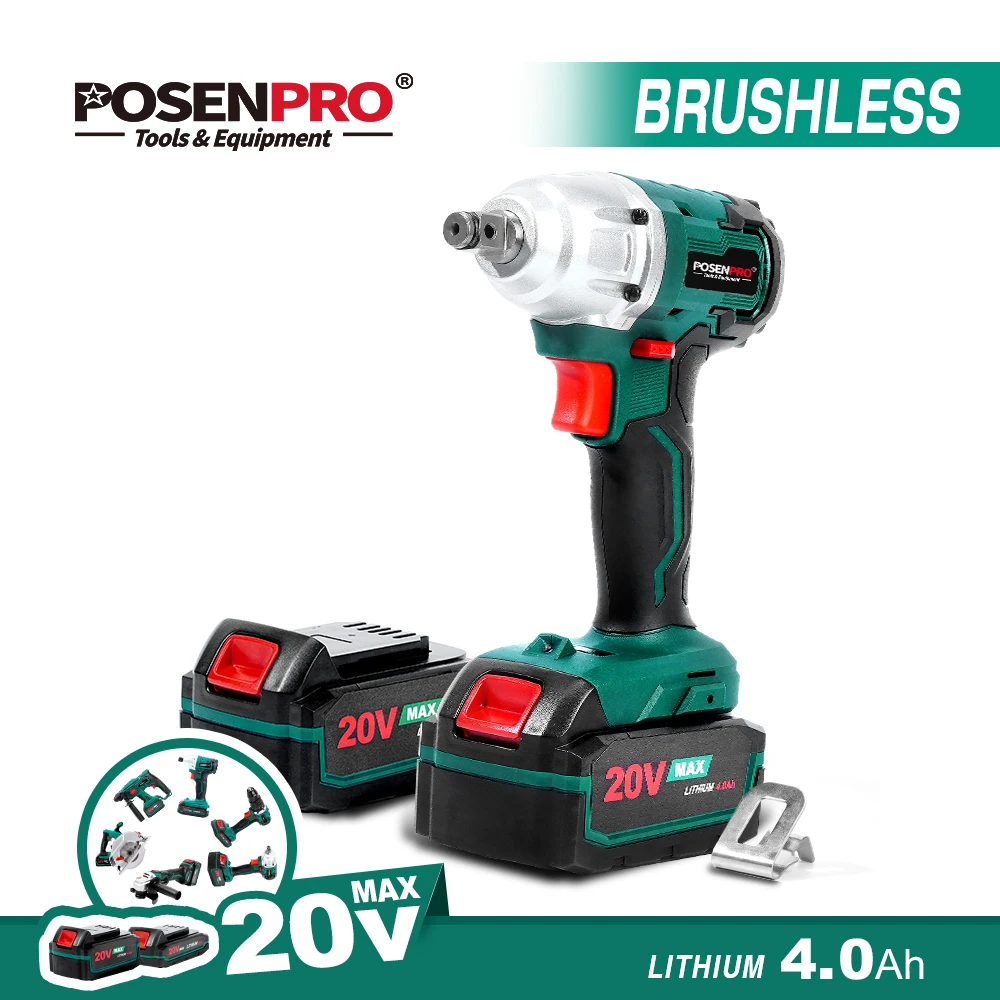 POSNPRO беспроводной электрический бесщеточный ключ 20 в ударный ключ 12 "Anvil квадратный бит светодиодный рабочий светильник 4.0Ah литиевая батарея