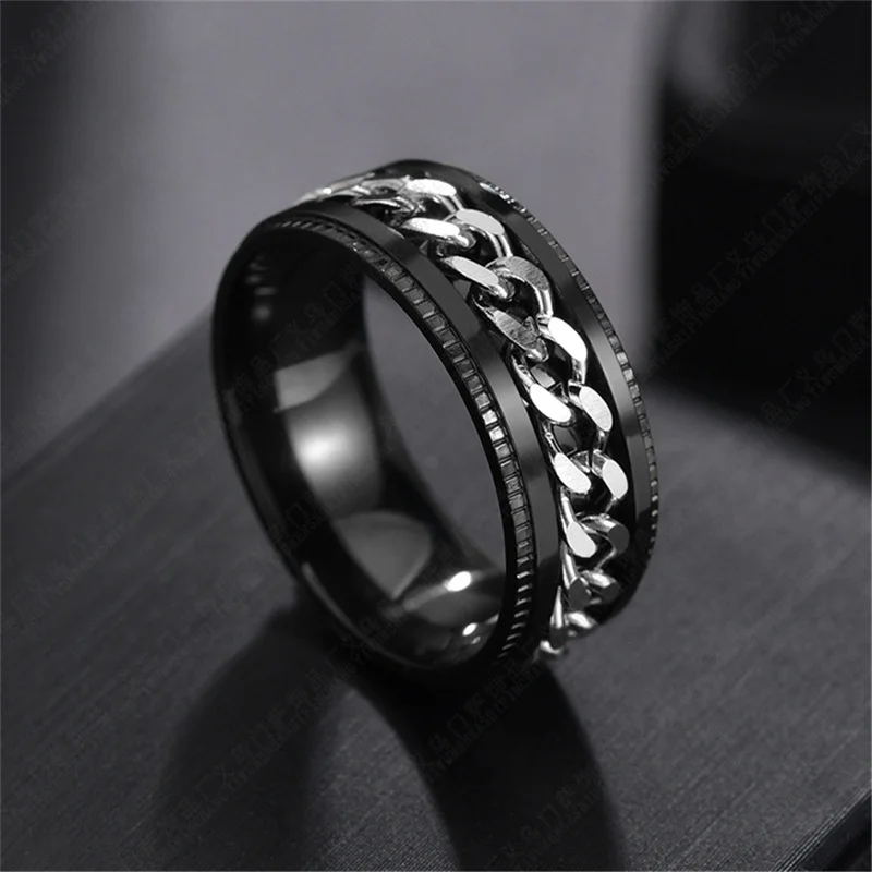 Вращающиеся кольца-антистресс для мужчин, титановая цепочка из нерж...