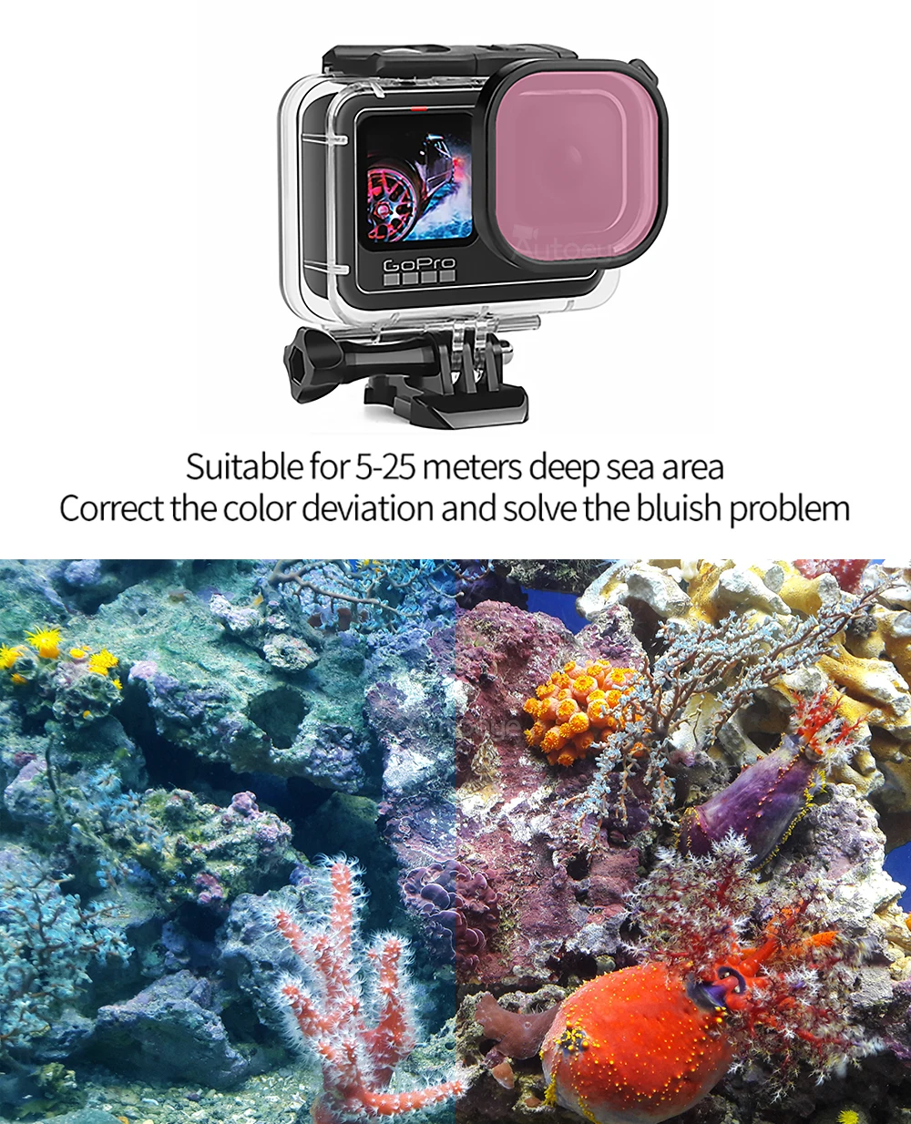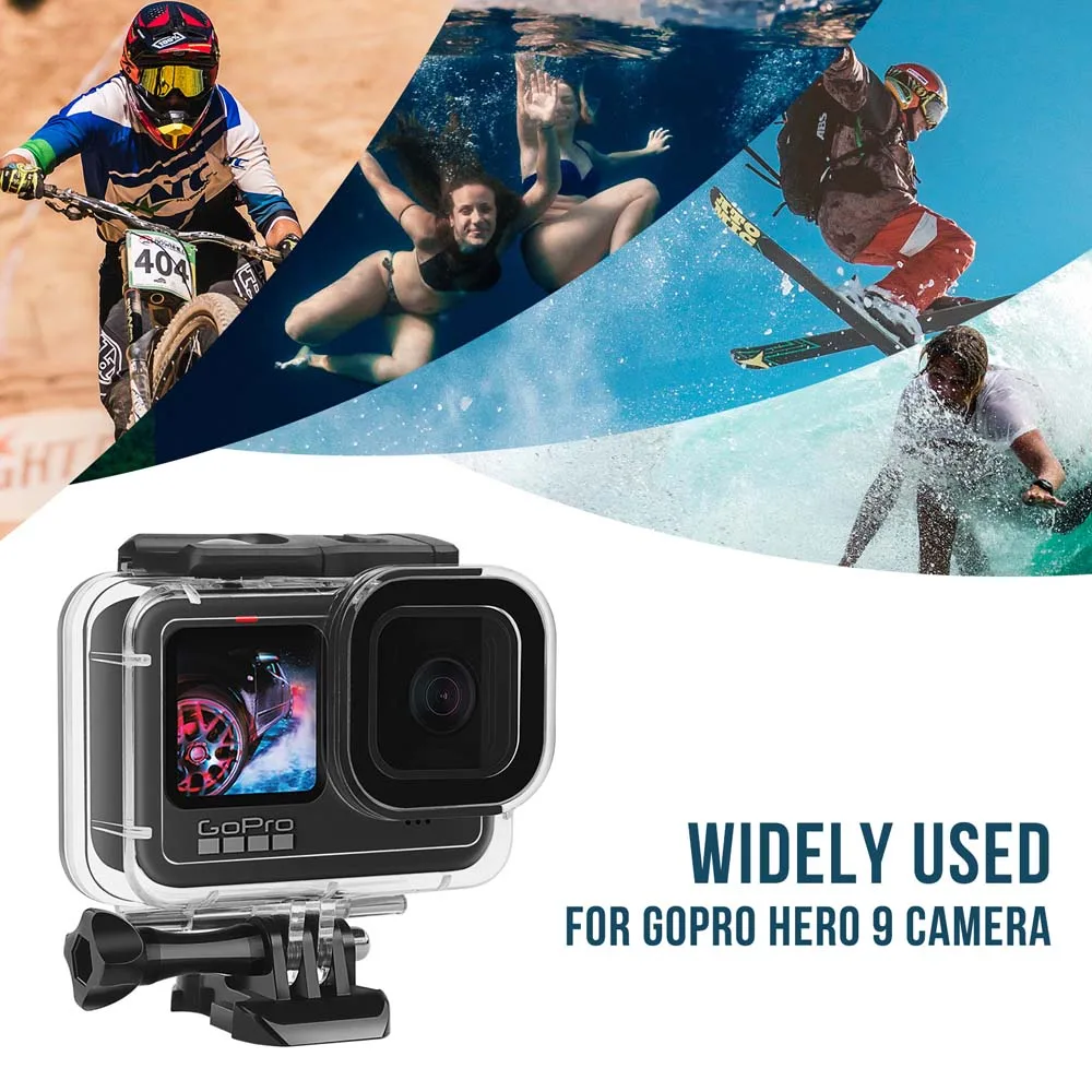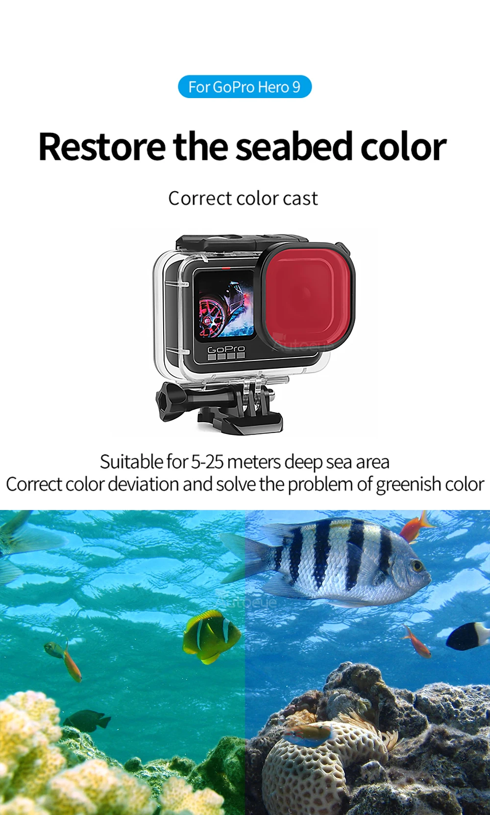 1. Идеально использовать камеру 60 м под водой, идеально подходит для подводного плавания, подводного плавания, плавания и других водных видов спорта2. Водонепроницаемый корпус Защищает камеру от воды, идеально подходит для GoPro Hero 9 черной экшн-камеры3. Высокопрочный ПВХ материал, 60 м подводный водонепроницаемый, пыленепроницаемый, ударопрочный4. Высококачественный объектив из закаленного стекла с высокой передачей, AF, AR двойное покрытие, легко моется и защищает от царапин5. Изготовлен со стандартным быстроразъемным креплением, длинный винт, легко прикрепить другие аксессуары