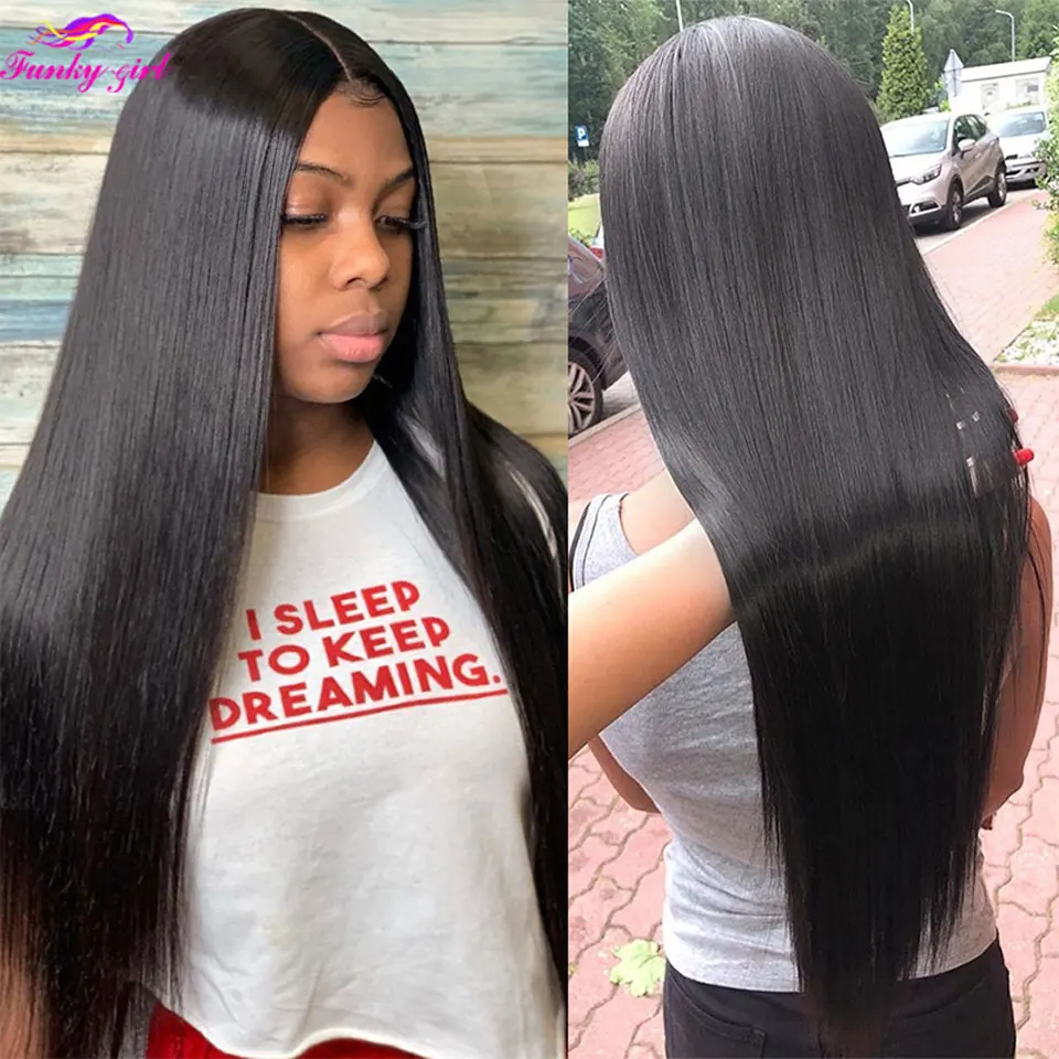 30-дюймовые парики из человеческих волос на прямой сетке спереди для женщин, прозрачные перуанские прямые волосы на сетке спереди, парик из 150% неповрежденных волос