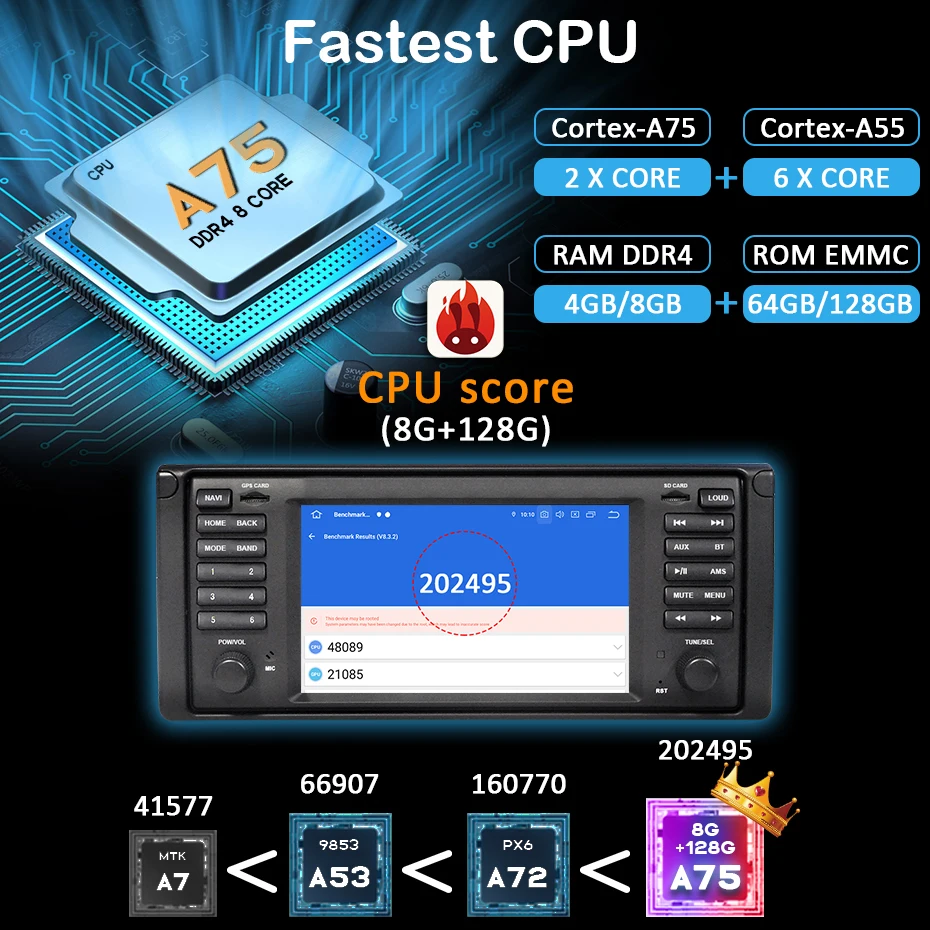 Самый быстрый процессорСамый быстрый процессор на современном рынке.Лучше, чем PX5 PX6 7862 9853 или другие ЦПAntutu Score- 202495, это самый высокий балл во всех ЦП в настоящее время