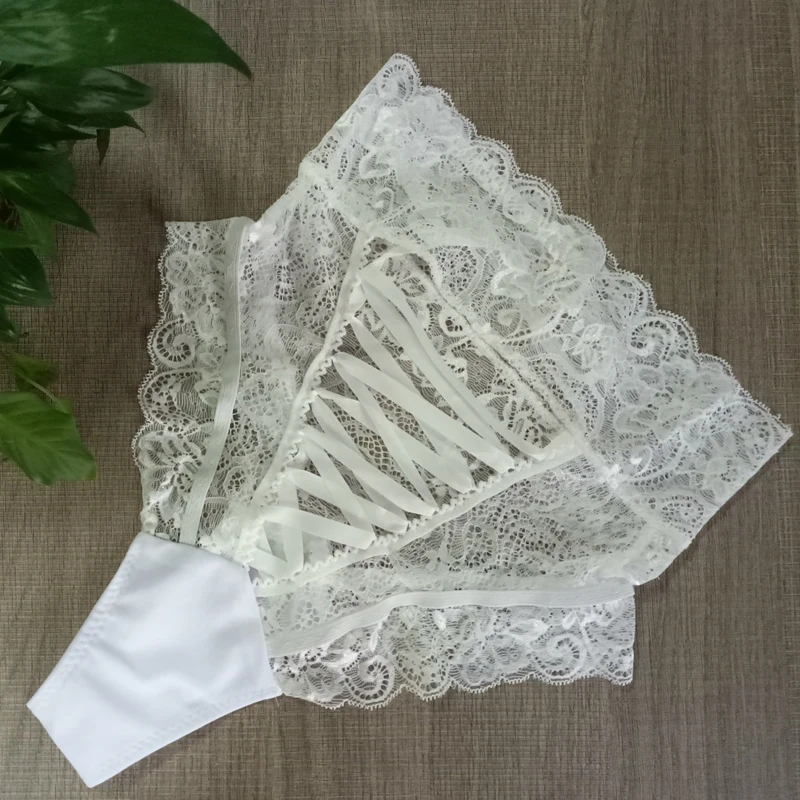 Сексуальные женские трусики с высокой талией и открытой промежностью на шнуровке