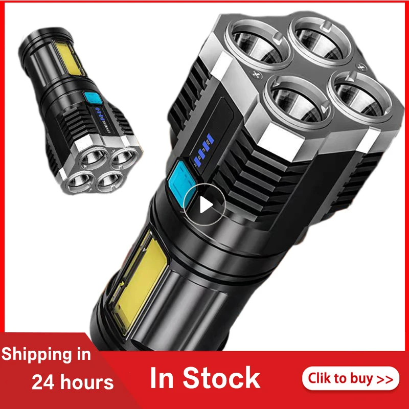 Фонарик светодиодный повышенной яркости с 4 головками, водонепроницаемый походный фонарь с большим радиусом действия для кемпинга, Путешествий, Походов, прожектор для улицы