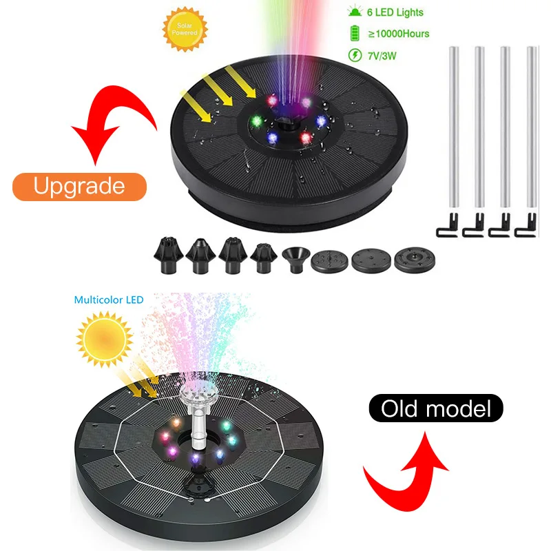 Цветной набор для водяного фонтана на солнечной батарее 7 в3 Вт, светодиодные фонари, водопад, плавающий фотобассейн, декор для пруда, лужайки