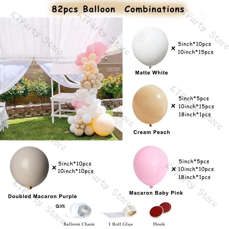 Macaron Baby, розовый шар, гирлянда, арка, свадебное украшение, белый, фиолетовый, кремовый, персиковый, вечерние, для дня рождения, для детского душа
