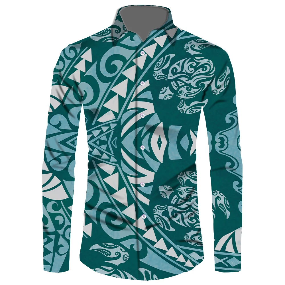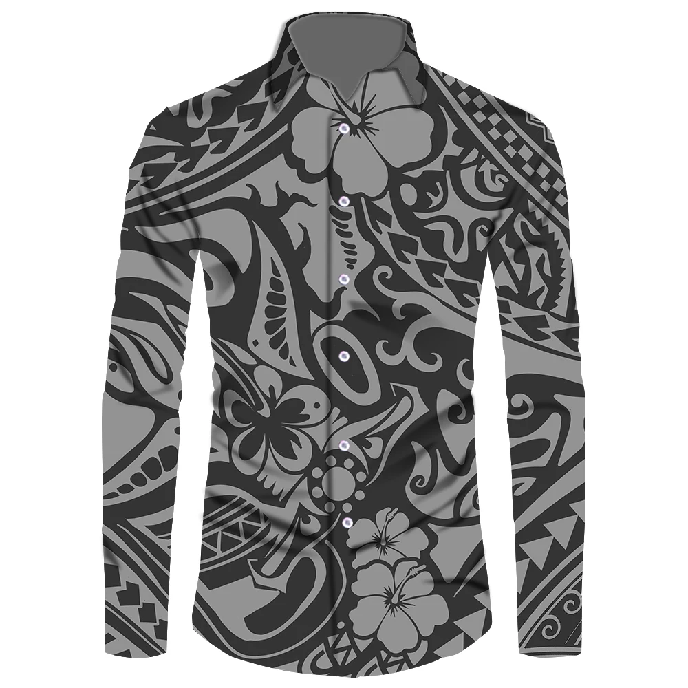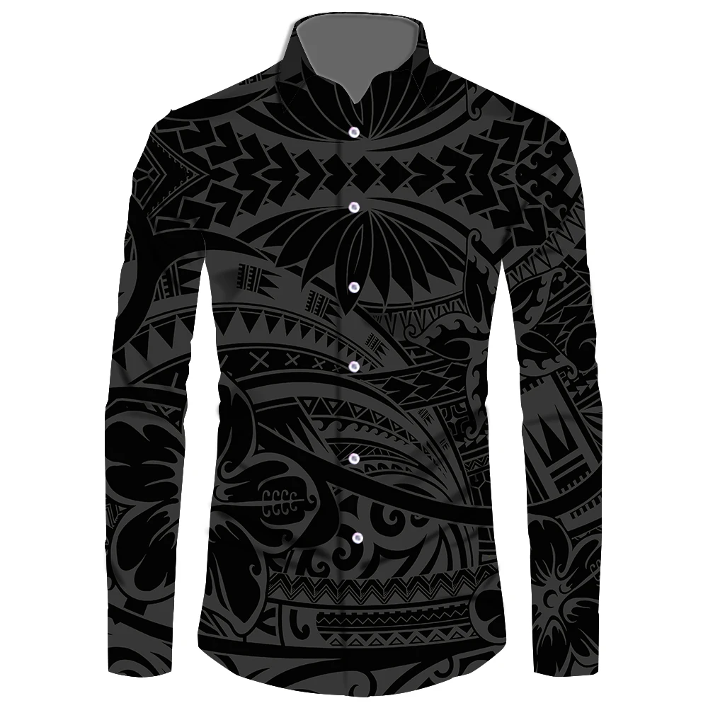 Крутая Мужская рубашка с длинным рукавом, индивидуальная уличная одежда, полинезийская традиция, племенной дизайн, мужская Тонкая рубашка с длинным рукавом