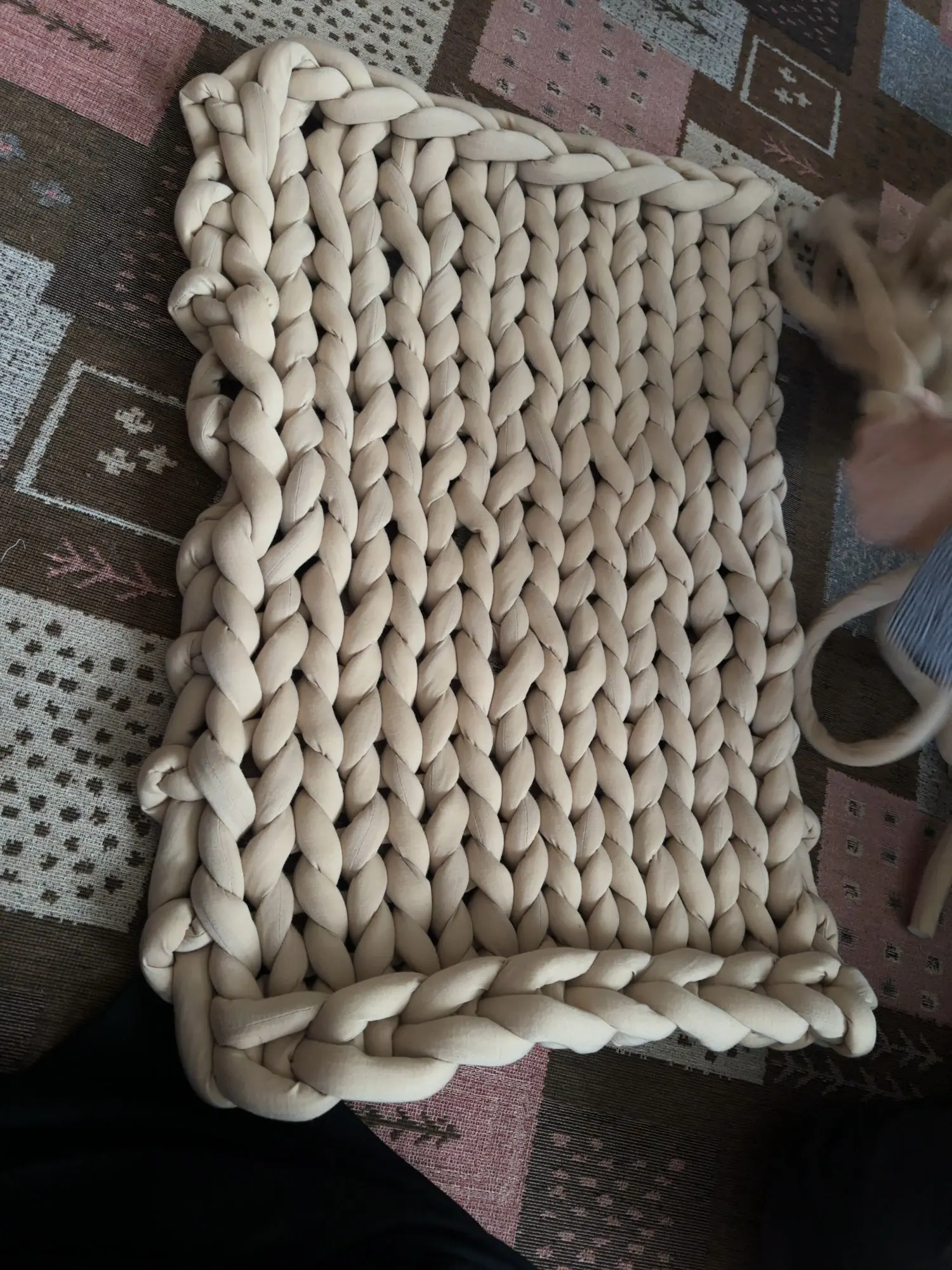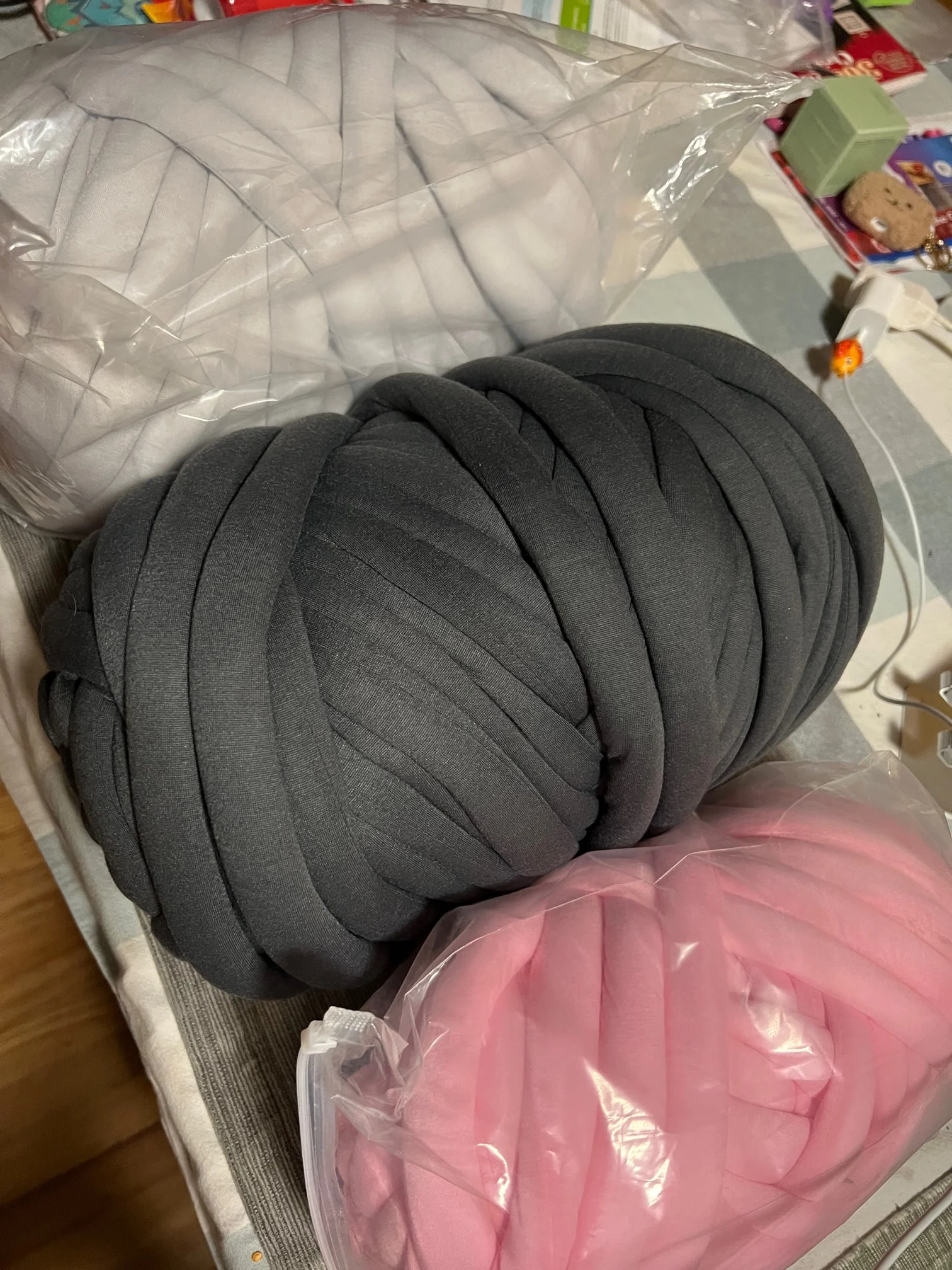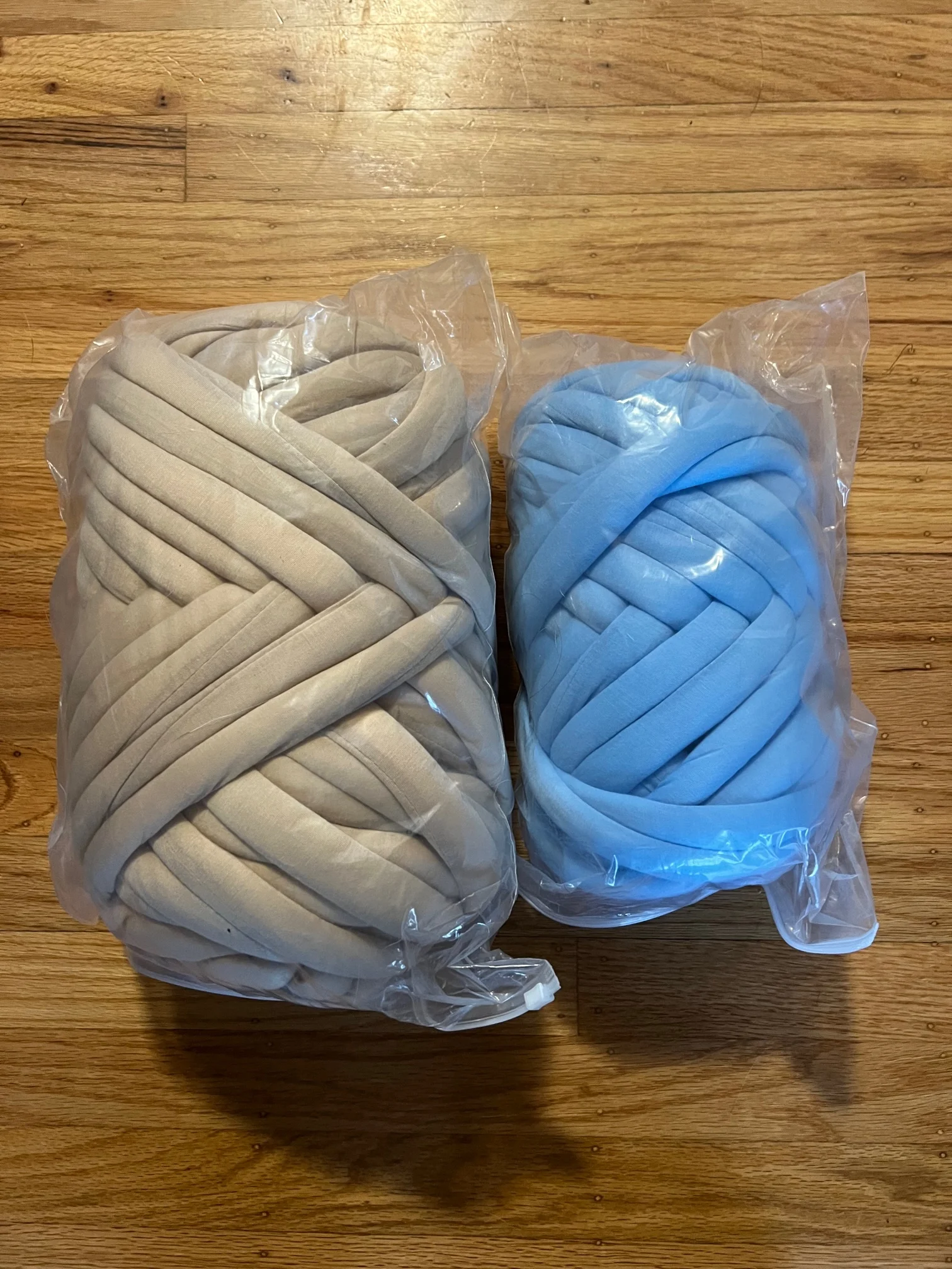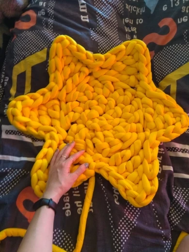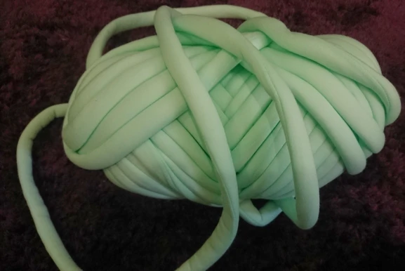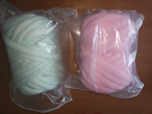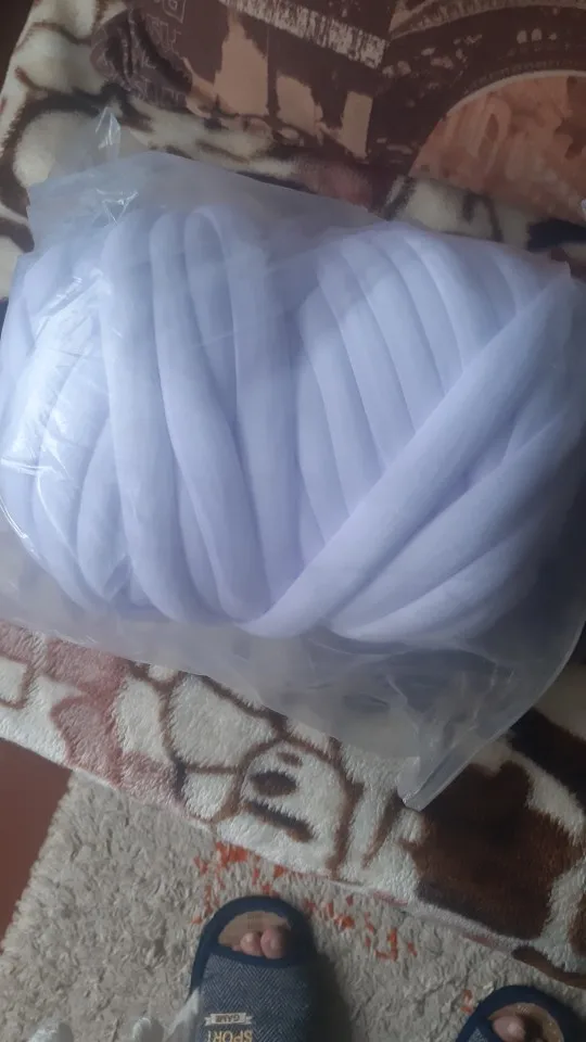 это не совсем пряжа, нить паралона обтянутая сверху тканью. 1 кг хватает на очень малое количество, 1 мотка хватило только на звёздочку в 50 см диаметром. Выходит очень дорого. Но из плюсов, доставили быстро курьером, приятная на ощупь ткань.