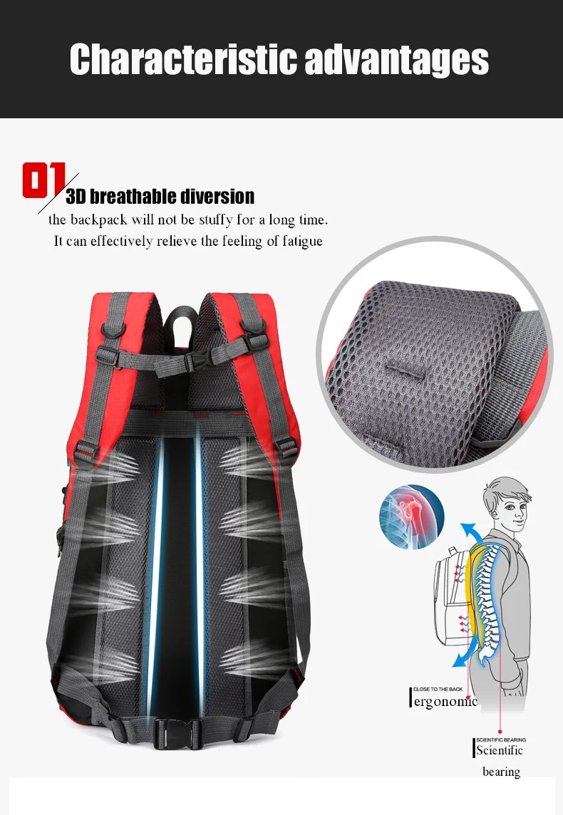 Водонепроницаемый дорожный рюкзак для мужчин и женщин, Спортивная уличная сумка 40 л с USB для скалолазания, кемпинга