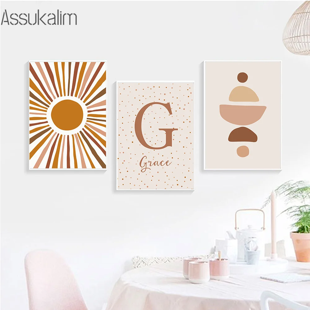 Настенные постеры в стиле бохо, картины с алфавитом, солнце, постер...