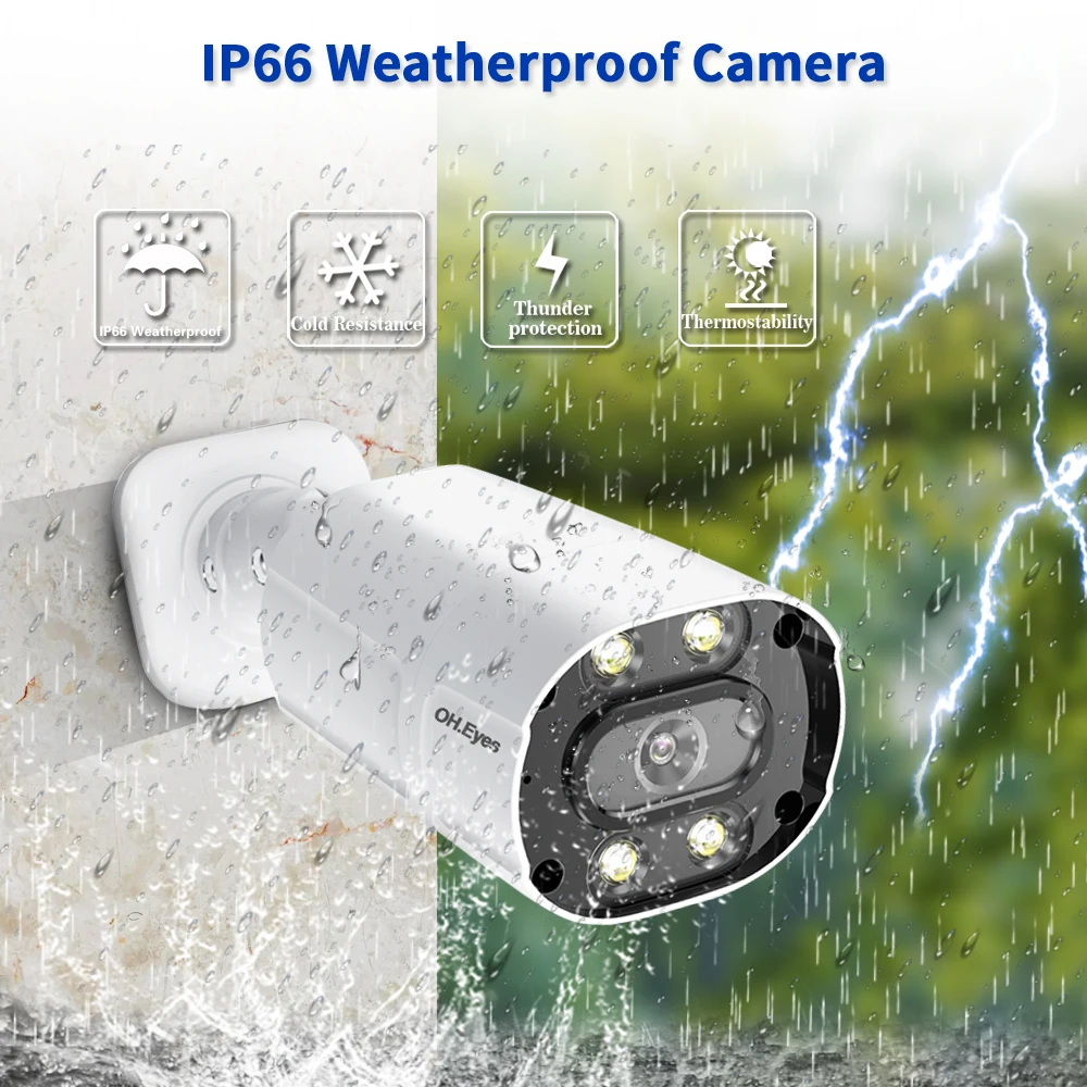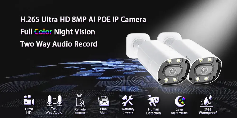 Цветная камера ночного видения, 8 Мп, POE, 4K, наружная, комнатная, погодозащищенная, двухсторонняя запись звука, цилиндрическая, камера с оповещением по электронной почте