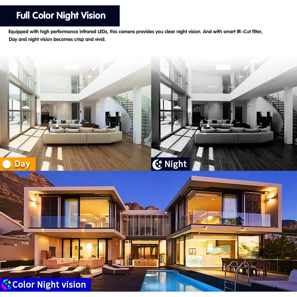 Умный фильтр, отсекающий ИК-спектр автоматически переключается между днем и ночью, цвет toreduce в дневное время и повышает яркость изображенияВ ночное время вы можете получить яркие кадры наблюдения от рассвета до темноты.