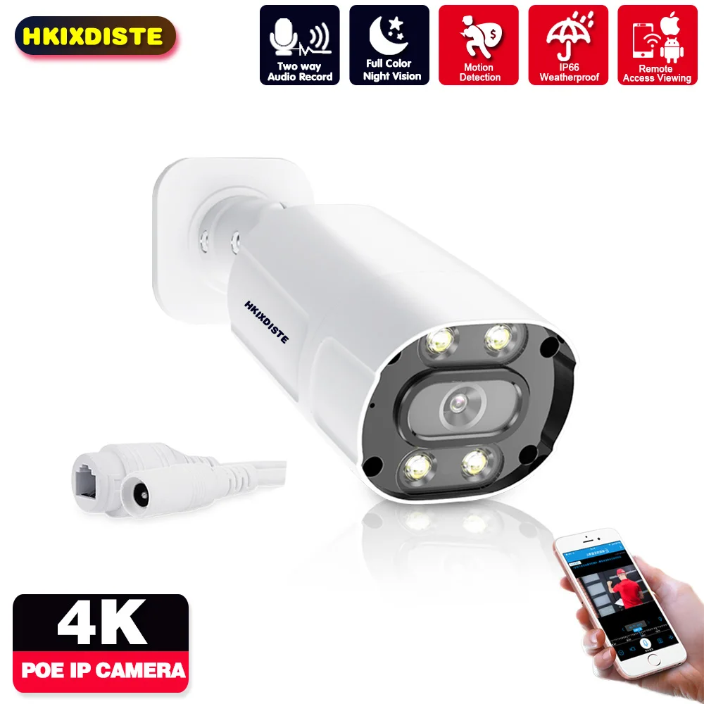HKIXDISTE 8MP 4K POE камера безопасности наружная Водонепроницаемая POE CCTV камера видеонаблюдения HD Двусторонняя Аудио Цветная камера ночного видения 8MP пулевая IP камера
