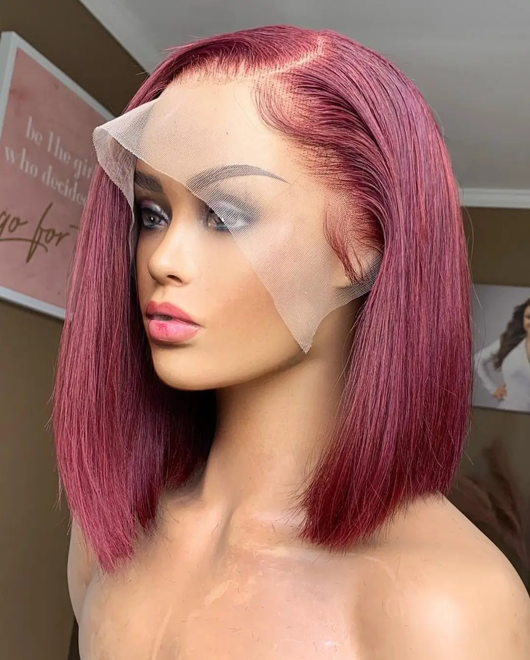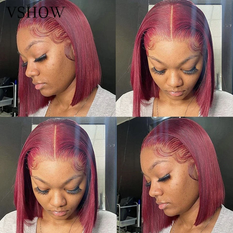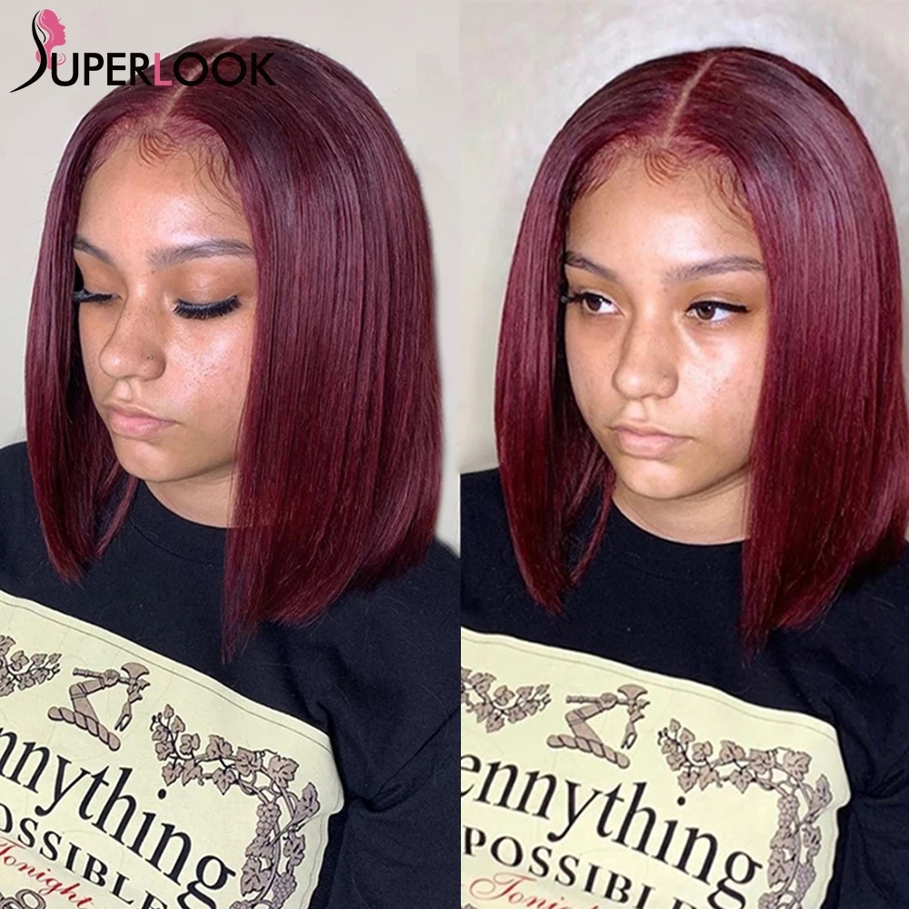 Парик 99J с коротким красным Бобом, парики с Омбре на сетке спереди для черных женщин, бразильские человеческие волосы оранжевого, имбирного, бордового цвета, парик на сетке с T-образной частью