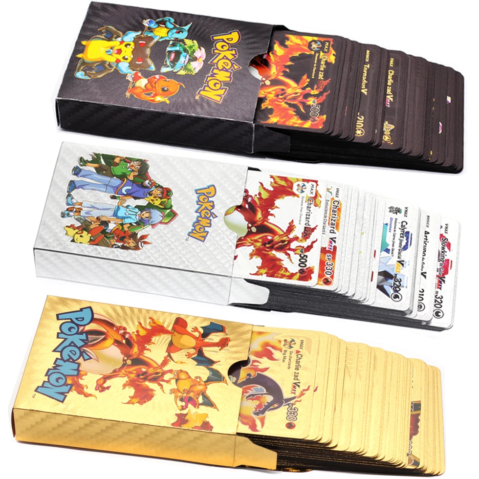 Новые карты покемона, металлическая Золотая карта Vmax GX Energy Charizard Pikachu редкая коллекция, Боевая тренировочная карта, детские игрушки, подарок