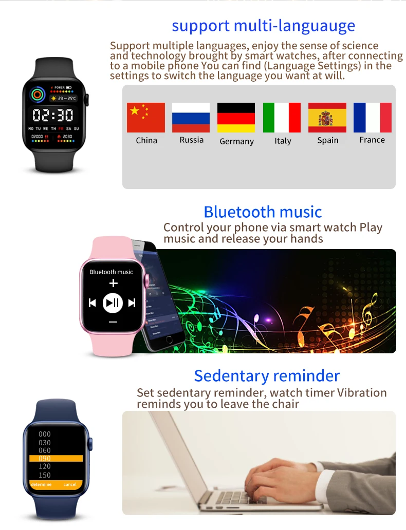 Особенности продукта* Погода * Спорт (ходьба, бег, альпинизм, Велоспорт, баскетбол, бадминтон, настольный теннис, футбол, снэппинг) * Пульс * Кровяное давление * Кислород в крови * Bluetooth музыка * Календарь * Будильник * Секундомер * Телефонная книга * Набор номера/Вызов Bluetooth * Информация * Настройка * Температура тела * Поиск мобильный телефон * Запись звонков * Подключение по Bluetooth * Шаг подсчета и уведомления будильник переворачивается и mutes * Переворачивает запястье, чтобы осветить экран * Трясет, чтобы ответить на телефон) * Qr-код (WeChat, QQ, Alipay, другие) * Alipay, сигнализация потери * Переключение стиля меню * Напоминание о питье * Facebook, Twitter * WhatsApp * QQ * WeChat * Разделенный экран * Блокировка паролем * Дважды нажмите кнопку для переключения меню.