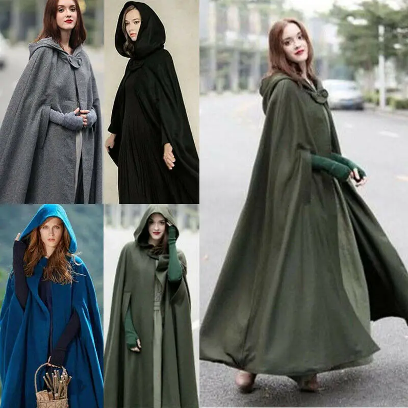Зимняя Длинная накидка, женский теплый халат, шерстяная накидка с капюшоном, куртка, ветрозащитное пончо, пальто, костюм